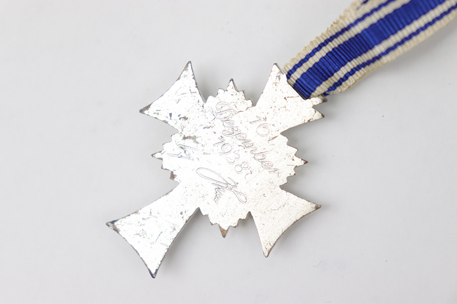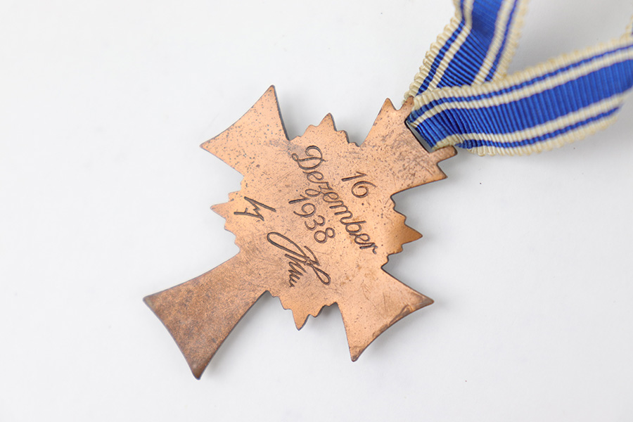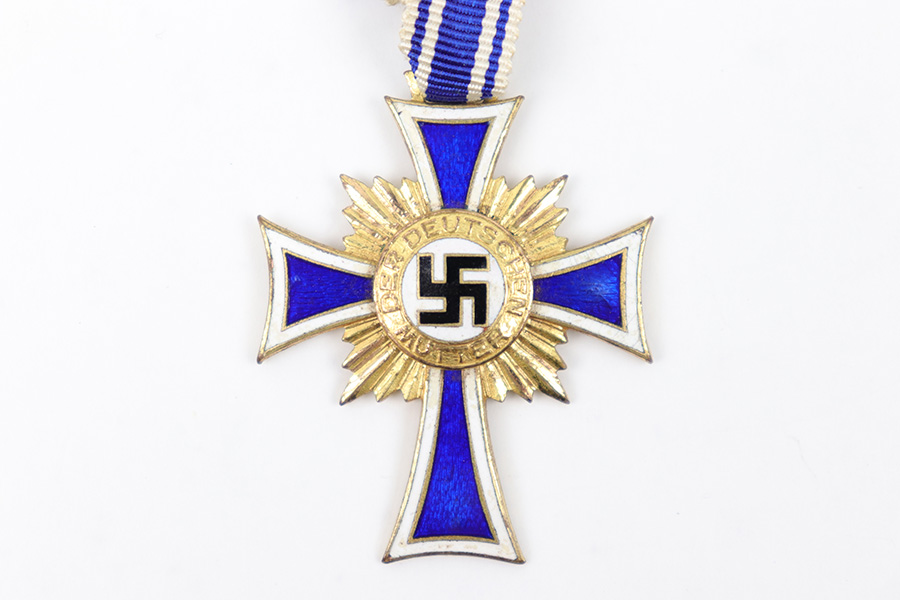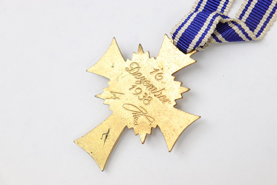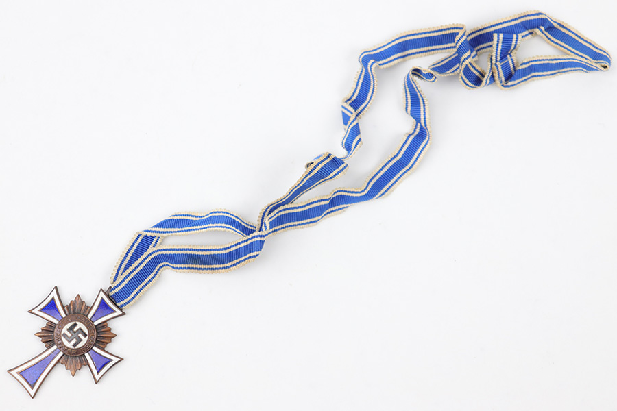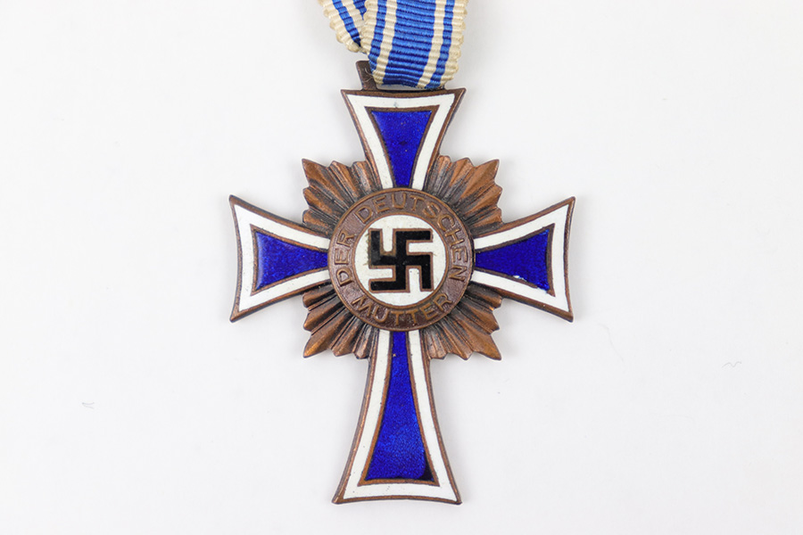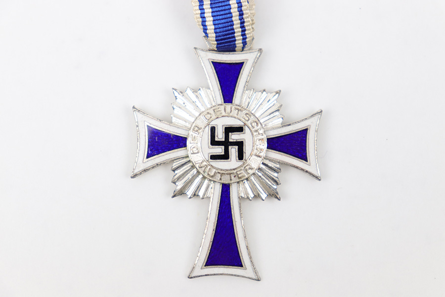 4/4/23 – This is an original set of 3 German Mother’s Cross medals. All three variations included: Bronze, Silver, and Gold. These were awarded for having children in recognition of the importance of motherhood in supporting and perpetuating a “strong Third Reich”. The 3rd Class (Bronze) was awarded for having 4 or more children, 2nd Class (Silver) was for six or more children, and 1st Class (Gold) was for eight or more children. All three examples are in great condition with original ribbons, except for the silver (2nd Class) which likely has a repro ribbon (condition seems too good to be true).