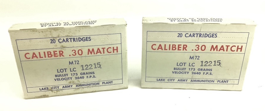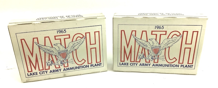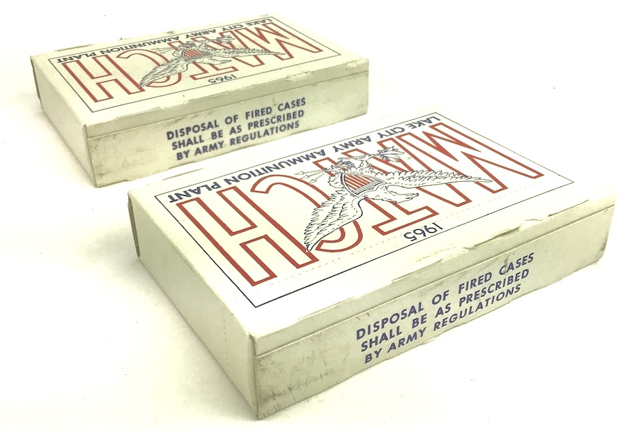 4/7/22 – These are full, original boxes of .30-06 cartridges. manufactured at the U.S. Military ammunition plant Lake City in 1965. This ammo was used for military match shooting and even used for some sniping in early Vietnam. M72 bullet 173 gr velocity 2640. Boxes rate as excellent. Nice color with strong and distinct colors. Only five boxes available. Price is for one box.