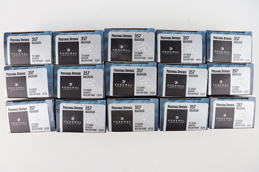 10/9/23 – This is 300 rounds of Federal Personal Defense .357 Magnum 125 grain jacketed hollow point ammunition. 15 boxes of 20 rounds each. Excellent condition.