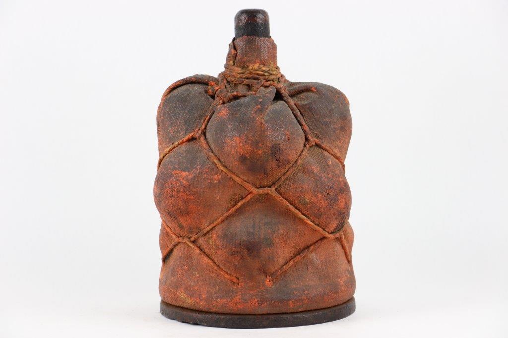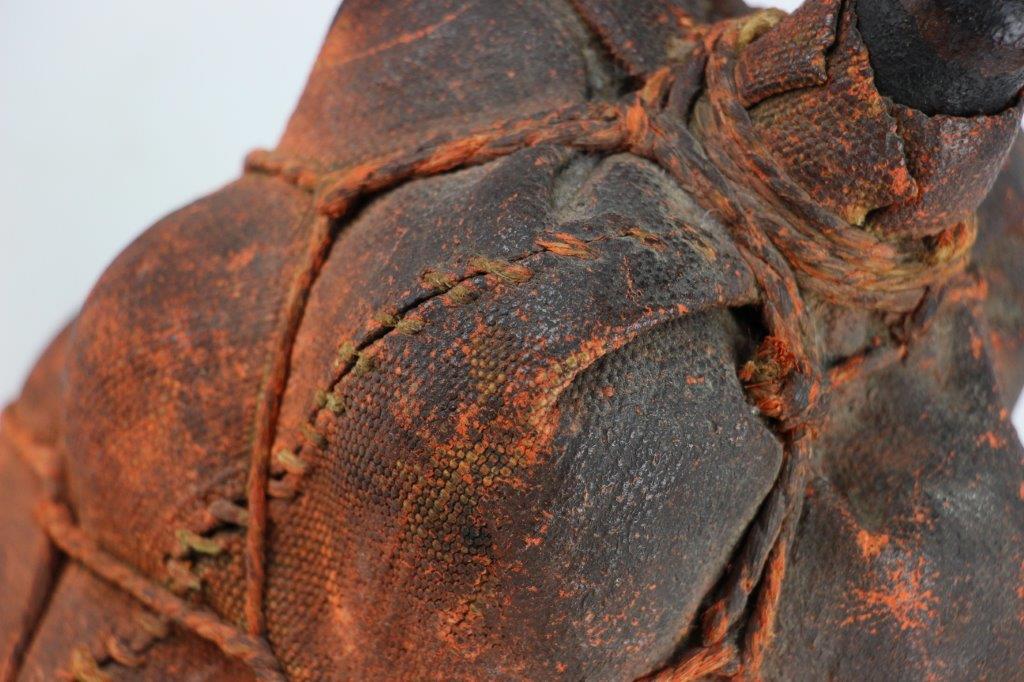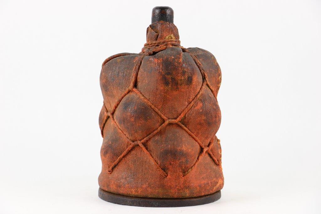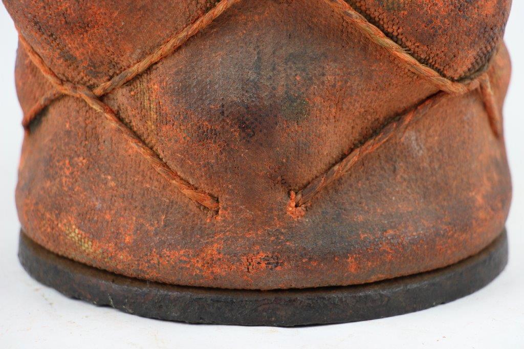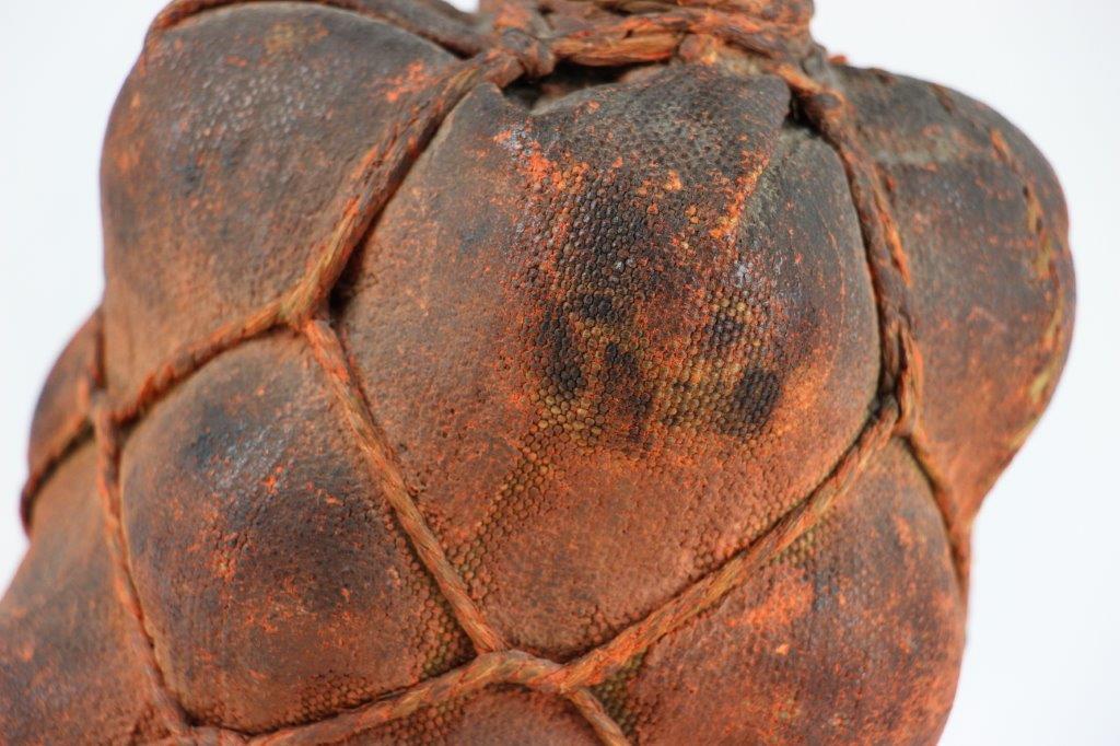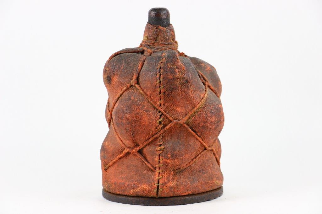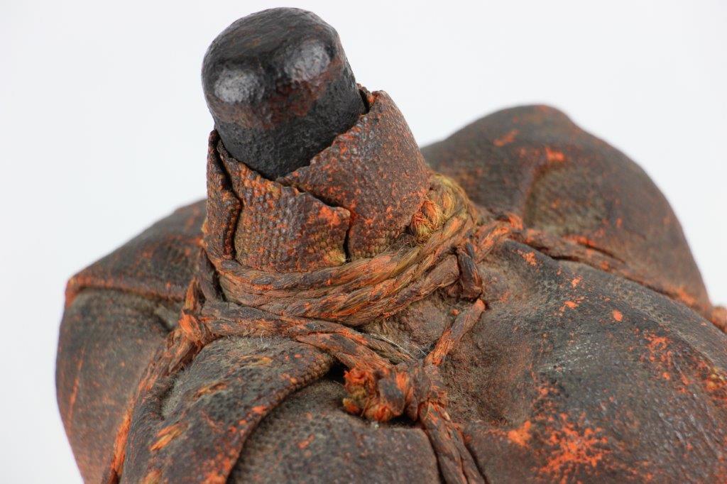 7/10/24 – This is an original 32lb Stand of Grape; and artillery round used for close quarters and naval bombardment. These were used during The War of 1812 through the Civil War. This example is in great condition; still covered in the original tar-treated canvas material. The original string holding the assembly together is tight and intact throughout as well. The shot consists of 12 small 3in diameter cast iron balls clustered together, sitting on a cast iron stand. The stand shows natural age and patina with no markings or stamps. Measures about 9.5 inches tall, and the stand has a diameter of 6 inches. An incredibly preserved piece of US history. (Note this is an inert round with no fuse or gunpowder.)