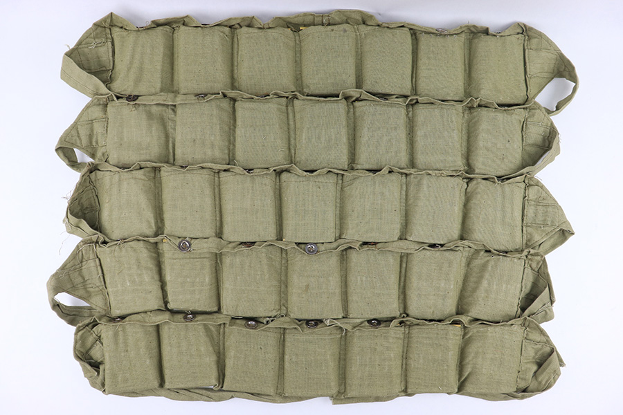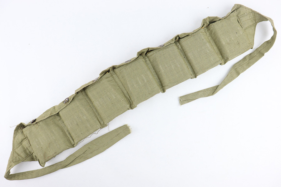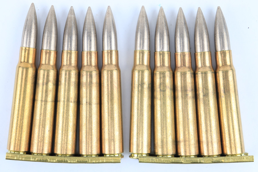 8/8/23 – This is 7.92x57mm Turkish Mauser Rifle ammunition from 1943. The ammo comes on stripper clips, and in canvas bandoliers, as shown. Great overall condition with some signs of aging and natural patina on the canvas bandoliers but all rounds are excellent. 1943 dated on the head stamp of each round. Note that this is corrosive ammo, so clean your rifle thoroughly after use!