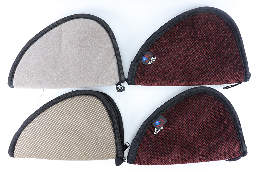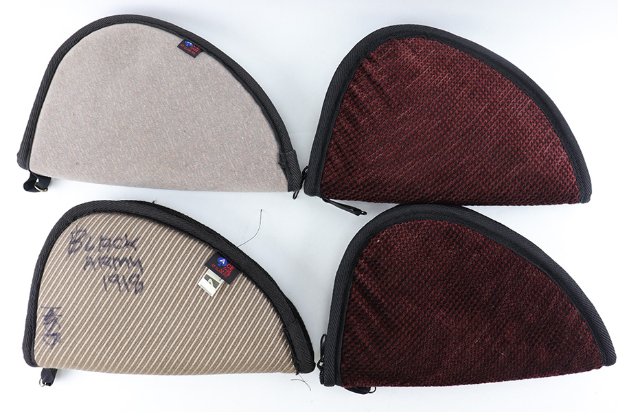 7/21/23 – This is a set of 4 used pistol soft cases. Each case is about 12 inches long and fits most handguns. Some have exterior writing from previous use, and mild signs of use wear. All have functional zippers and are nicely padded.