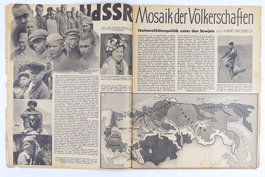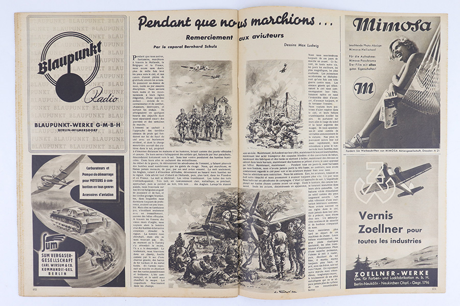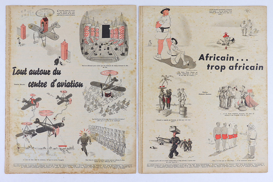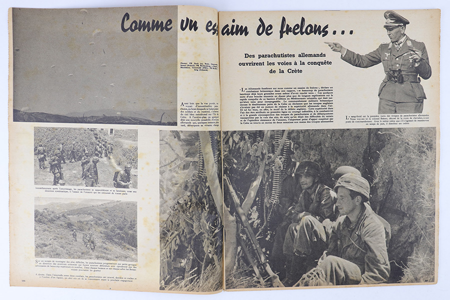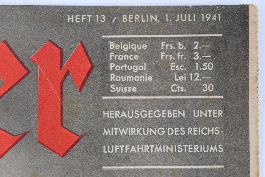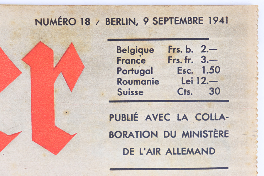 7/5/23 – These are 4 original copies (or volumes) of “Der Adler” magazine from 1941. Three of the four are written in French, for distribution in France as Nazi propaganda after their invasion in June of 1940. Each edition shows some yellowing and mild fraying / normal wear along the edges and corners of the pages. All pages are in tact however and these are in great overall condition. An interesting piece of WW2 history.