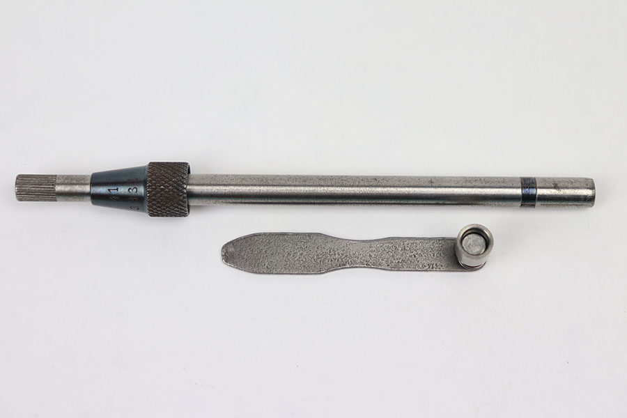 4/8/21 – This is an original 1941 dated 4mm barrel insert and loading spoon for the Walther PP pistol. The screw cap is blued and serial numbered 3331. Above that is a “41” date stamp. Research finds that a German company RWS had a patent for this design during the WW2 era. Makes for a nice addition / supplement for a 7.65mm Walther PP pistol collector. The bore has strong rifling but there is mild patina and residue within the grooves.