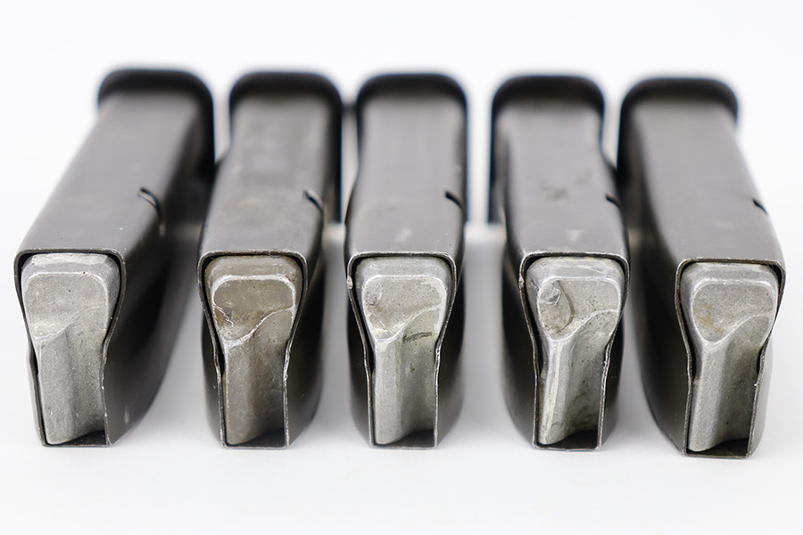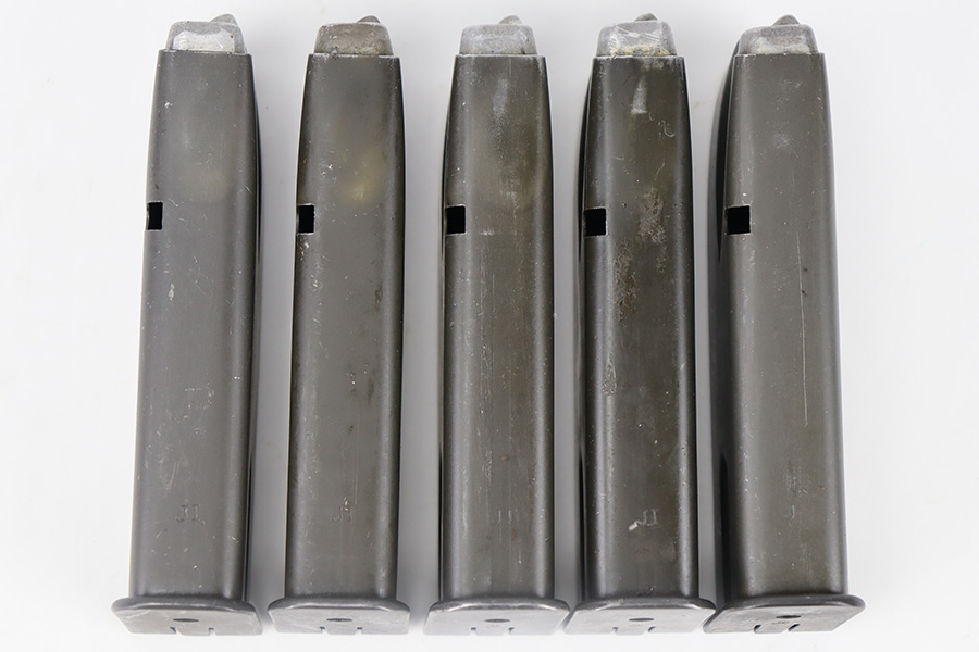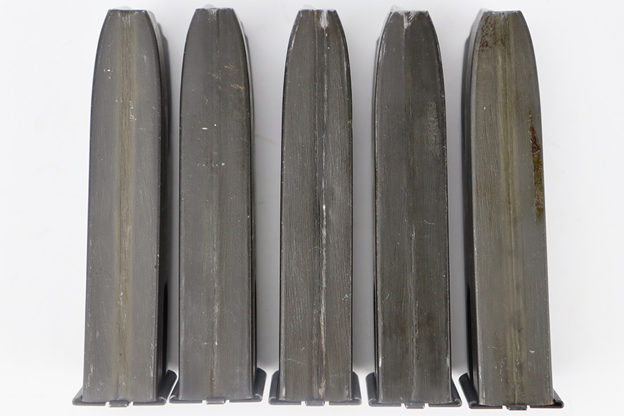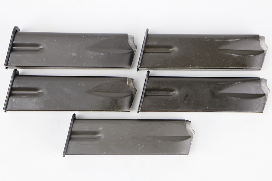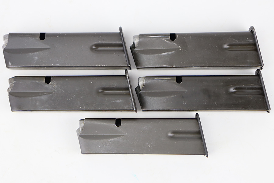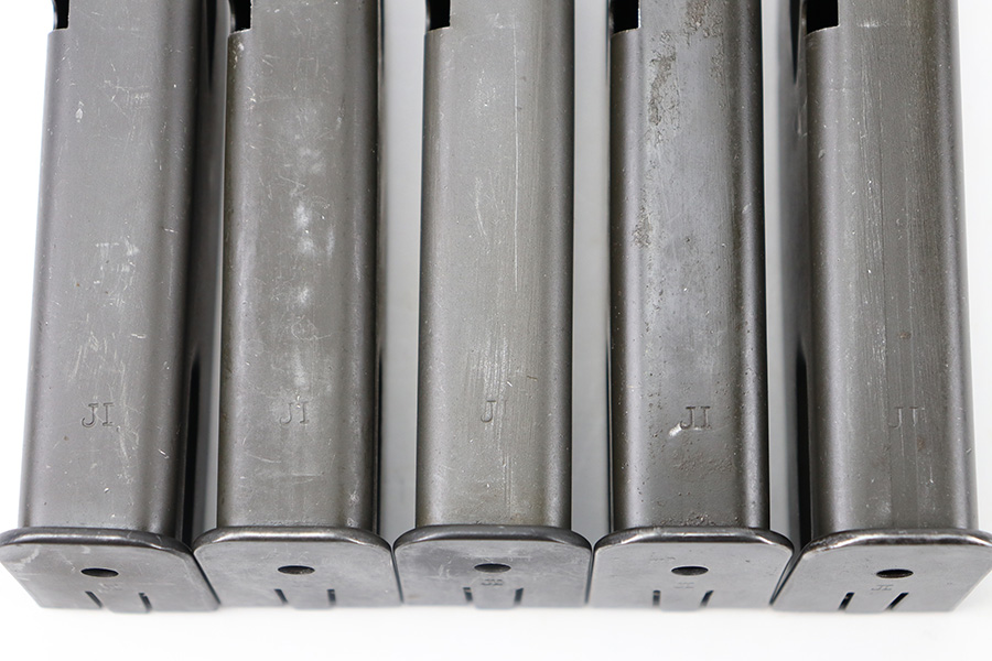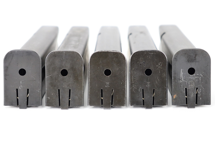 11/30/23 – This is a set of 5 original WW2 era Canadian Inglis High Power magazines. Each magazine holds 15 rounds of 9mm. Works with any high power pistol. Excellent condition with minimal finish loss and marked “JI” on the base and front spine, as shown. Fully functional springs.