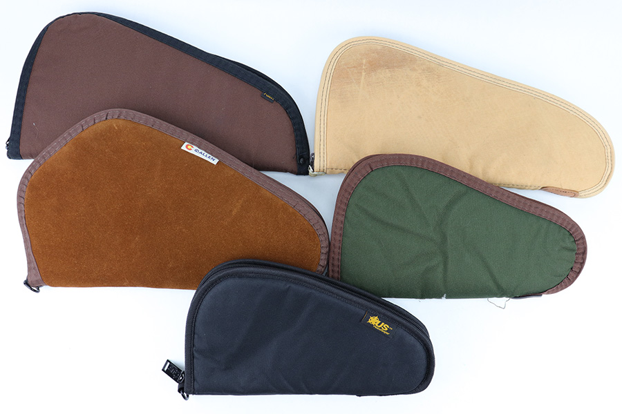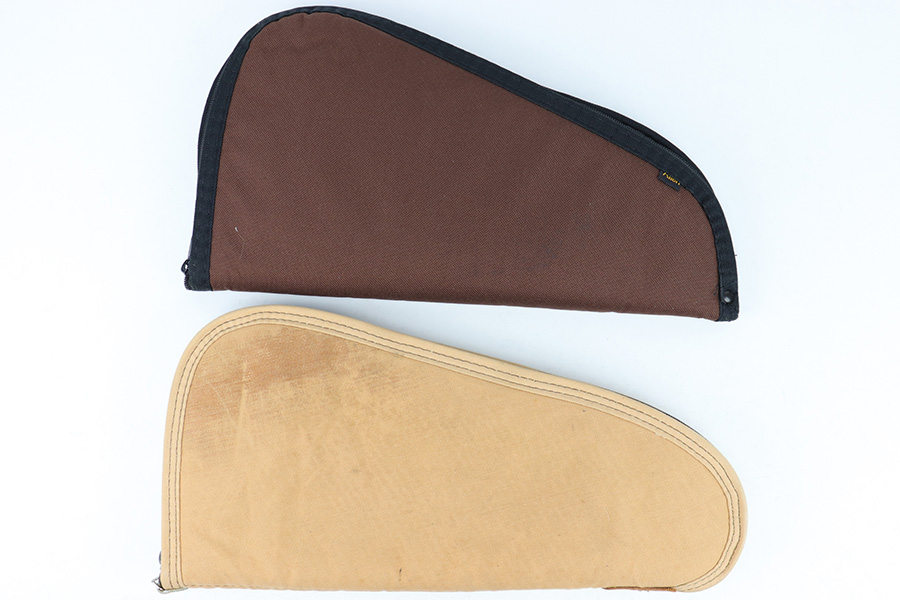 6/23/23 – This is a set of 5 lightly used pistol soft cases. Great for transportation and storage. All have padded interior and functional zippers. The smaller sized cases are about 11 inches long (2 total) and the larger cases are just under 15 inches long (3 total).