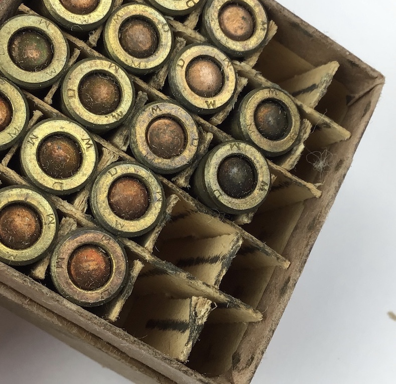 Total of 42 rounds. Visible cartridges are in excellent condition with a head stamp of “DWM” We presume the un-opened cartridges to be in similar condition.