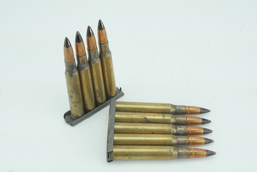 10/21/24 – This is 9 rounds of 30-06 armor piercing ammo manufactured in Saint Louis during WW2. The rounds are in good condition, the brass has patina given its age.