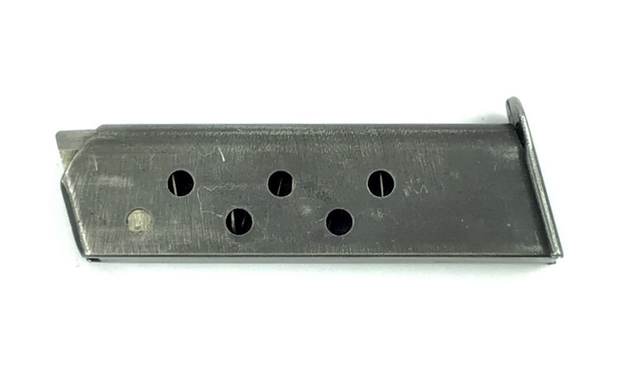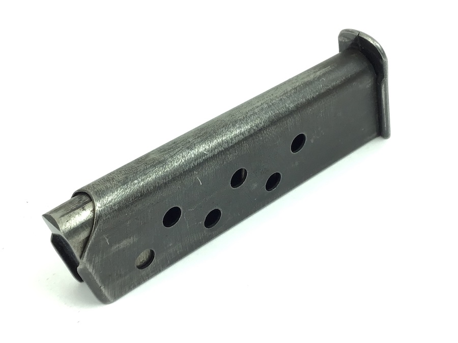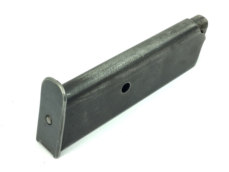 4/27/21 – This is an original WW2 production Walther PP magazine in 9mm. Fairly scarce and in great overall condition. Some natural patina and normal signs of aging, but no rust or pitting. Strong, fully functional spring. All original and authentic.