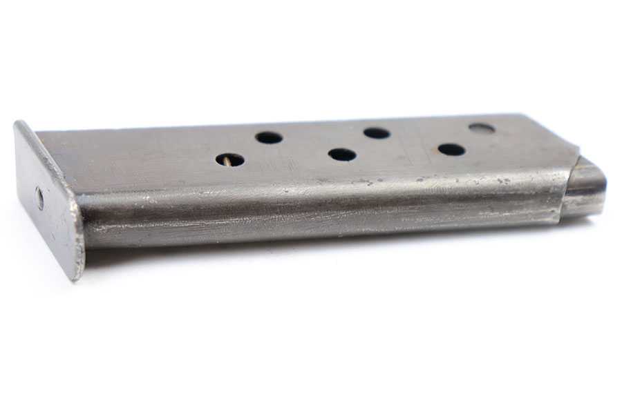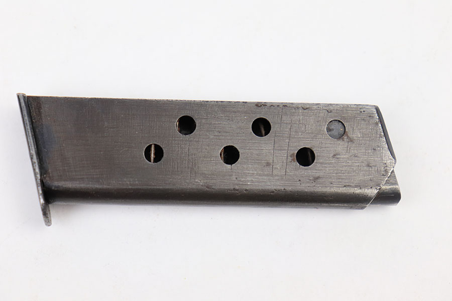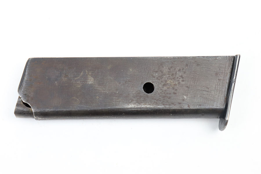 3/9/21 – This is an original wartime production Walther PP magazine in 9mm. No markings or stamps, and a dull wartime finish. There’s mild patina throughout the finish, but no major wear or damage. Fully functional spring is strong and without issue.