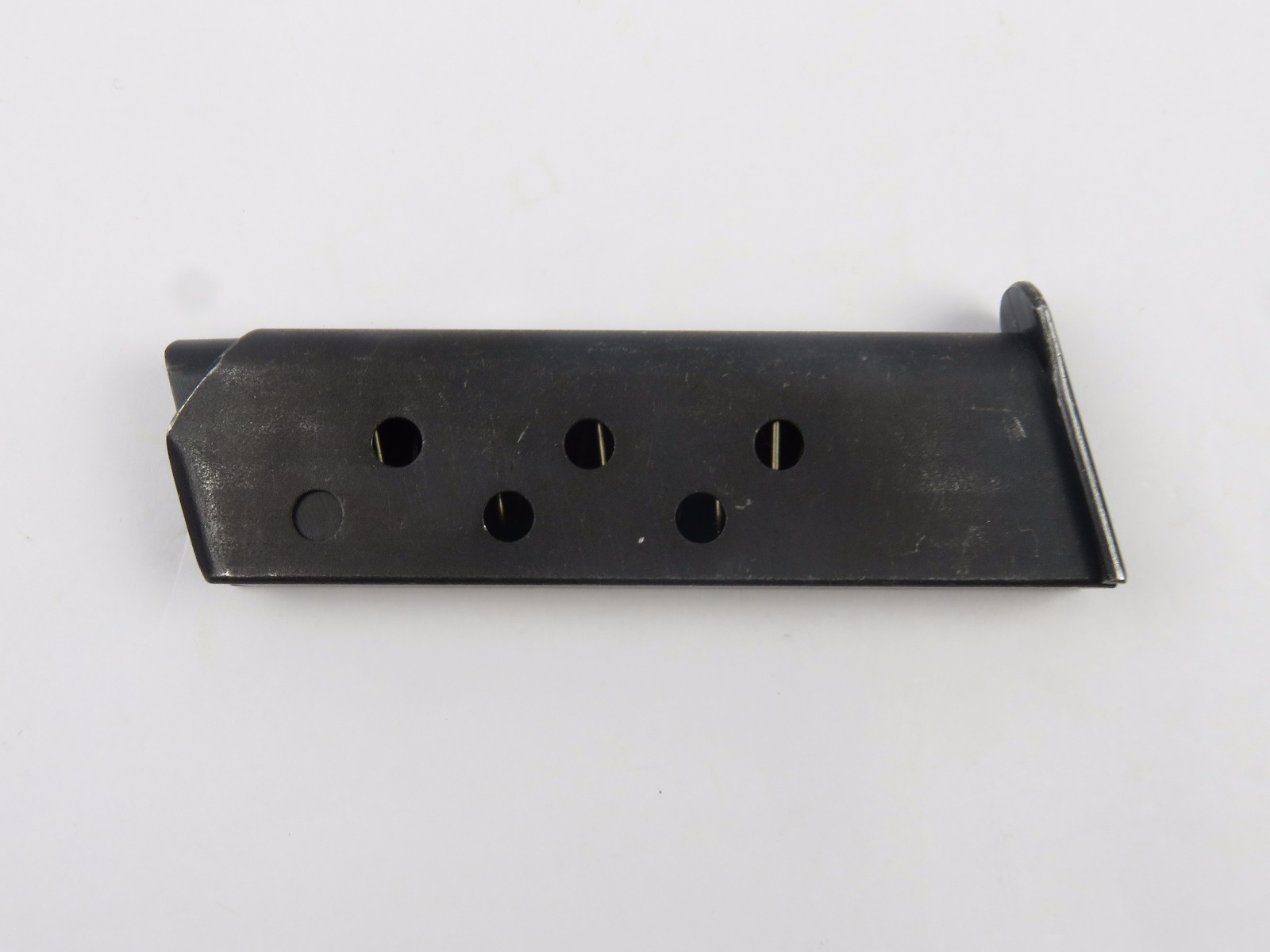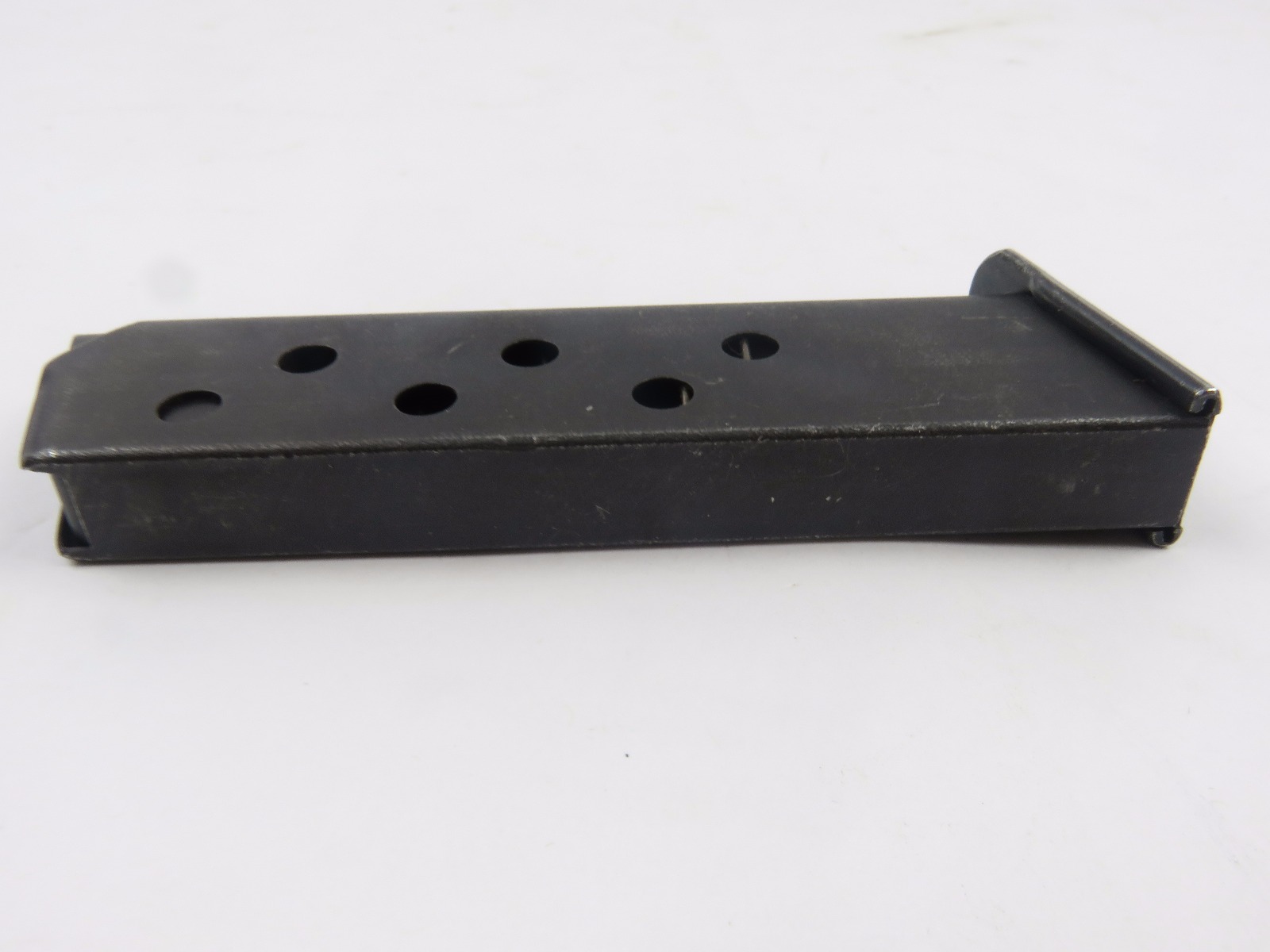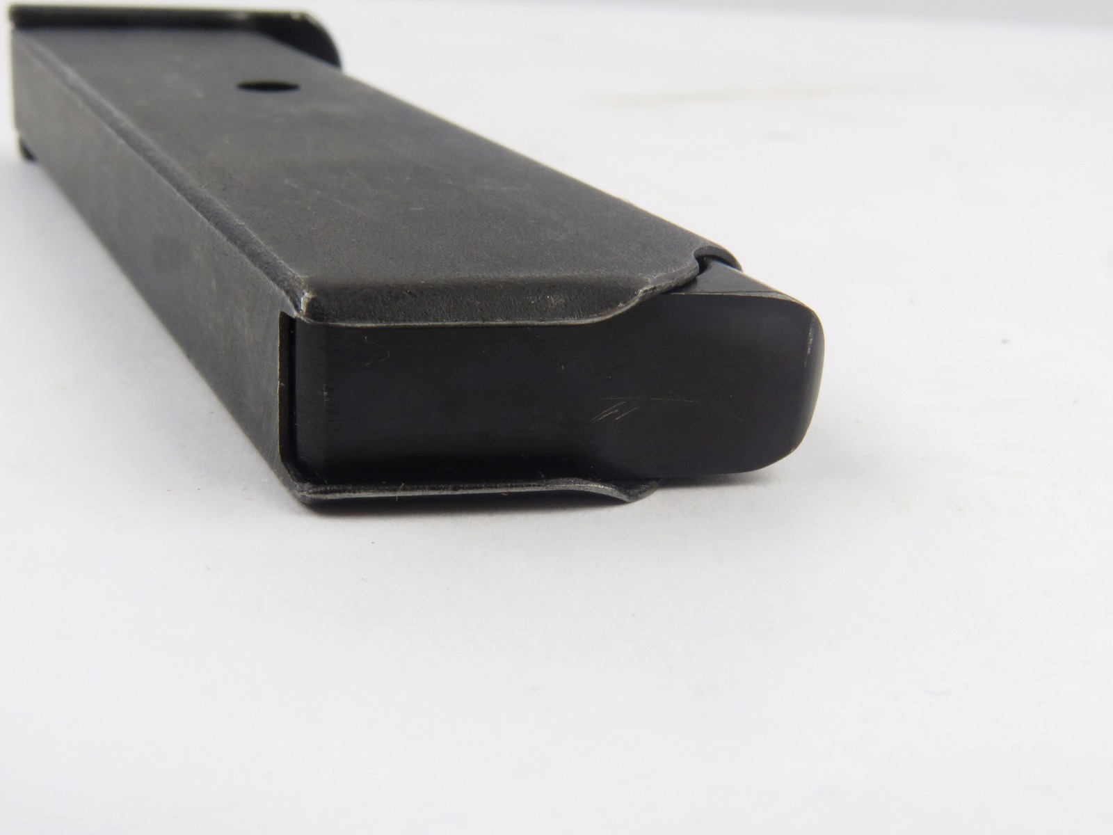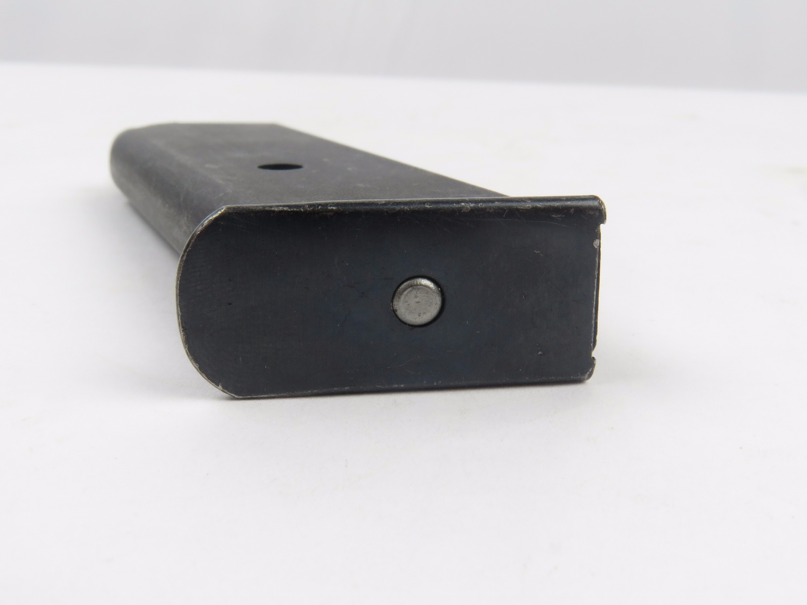 10/26/17 – This is an original WW2 wartime production Walther PPK magazine in 9mm. The magazine is stamped on one side with a Walther banner and “Cal. 9m/m” underneath. The finish on the frame is a dull bluing, and overall the finish is excellent with no rust or pitting. The base is unmarked and original. The spring is strong and fully functional. Guaranteed all original!