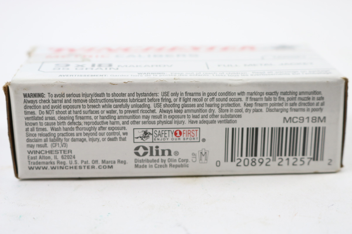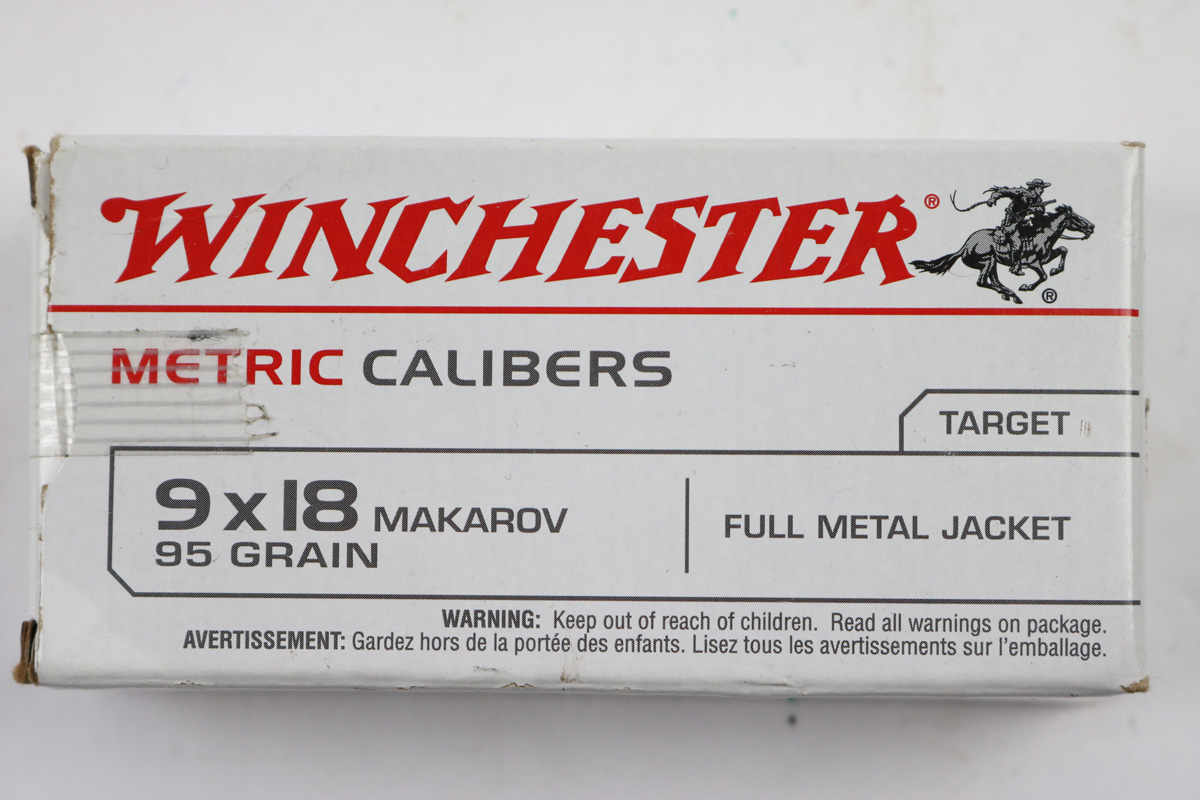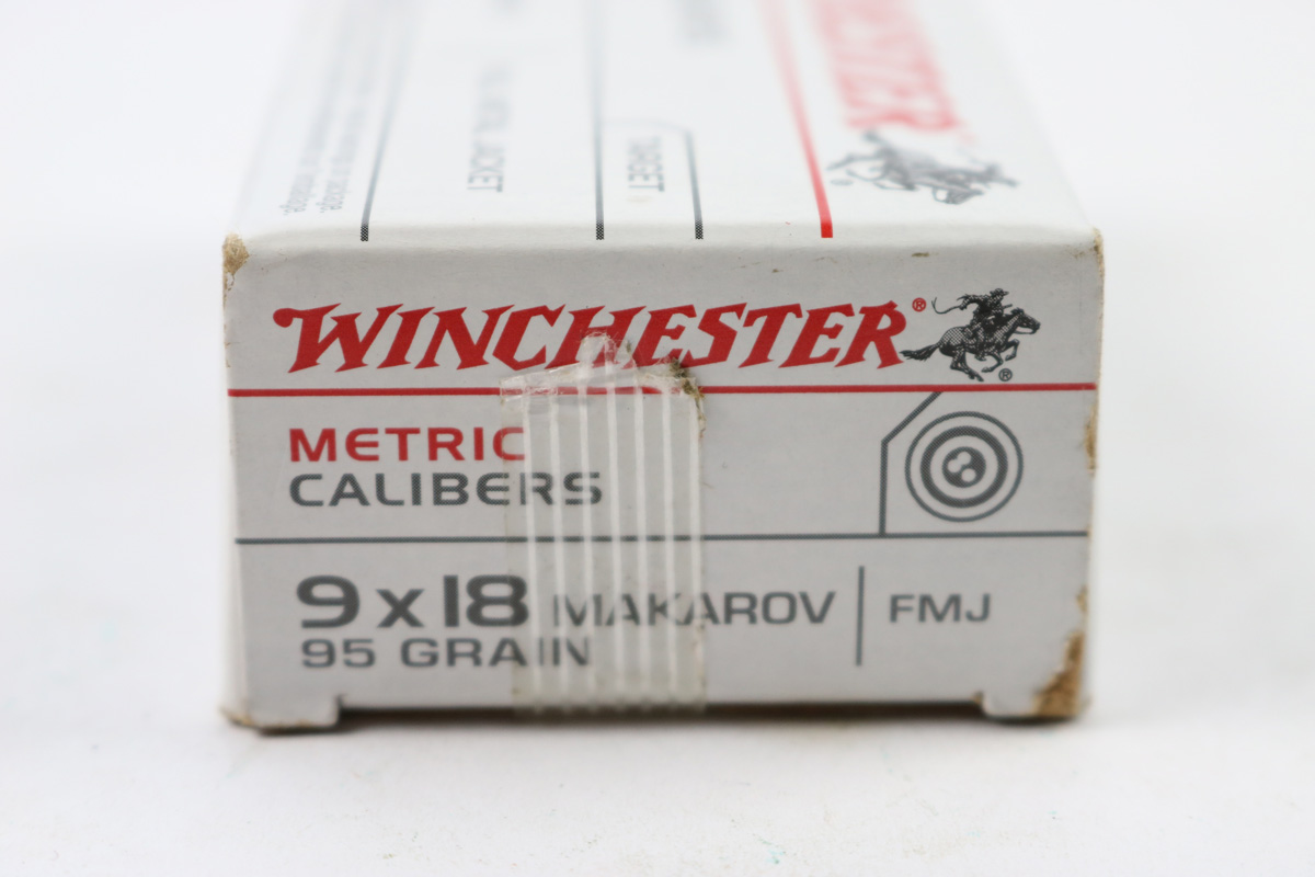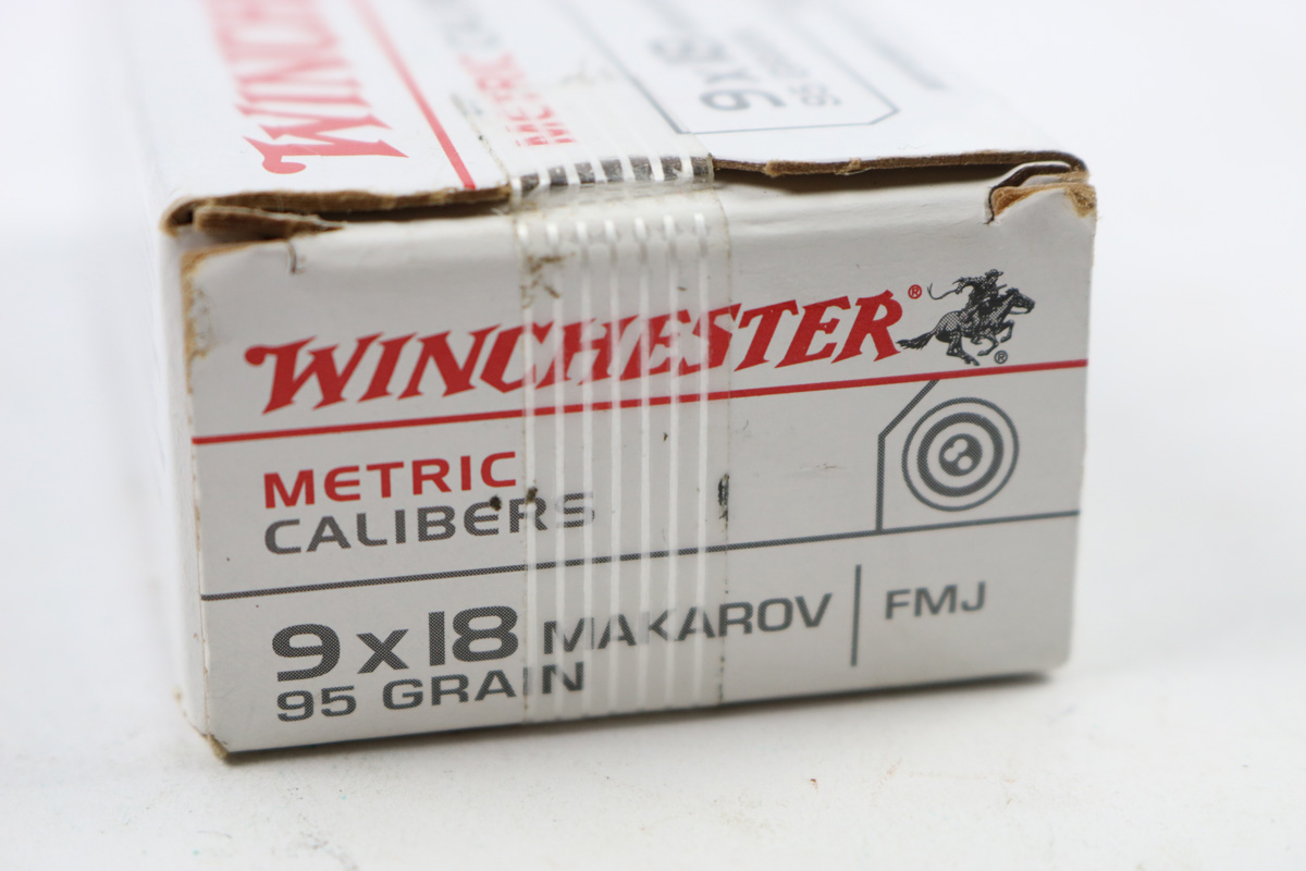6/4/18 – 50 rounds of 9x18mm Makarov ammo. Ammunition is coming from Winchester and is in excellent condition. Boxing is unopened and in excellent condition with slight fraying on the corners.