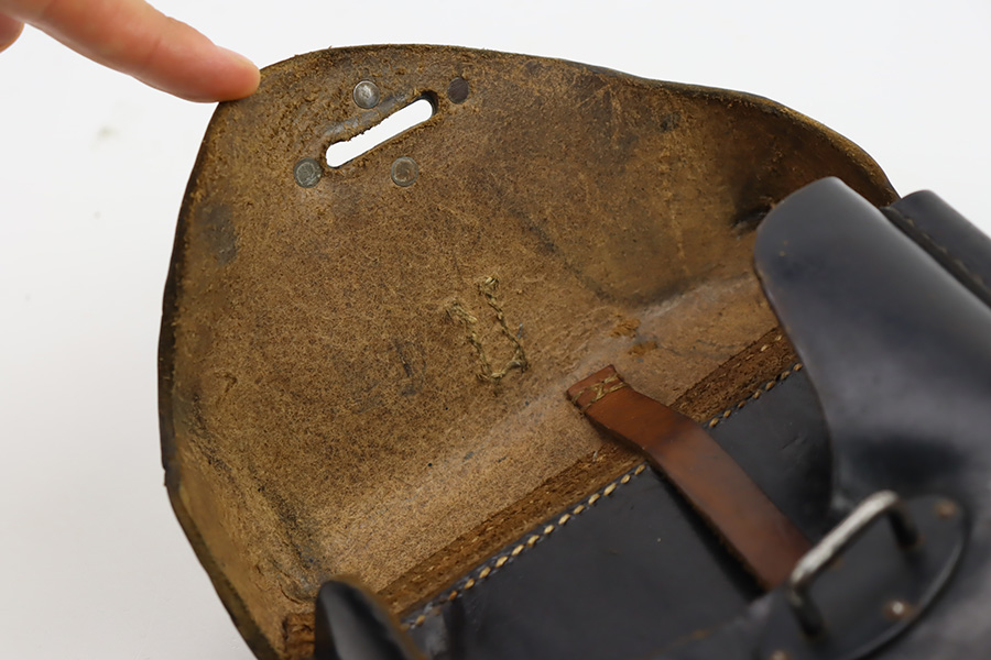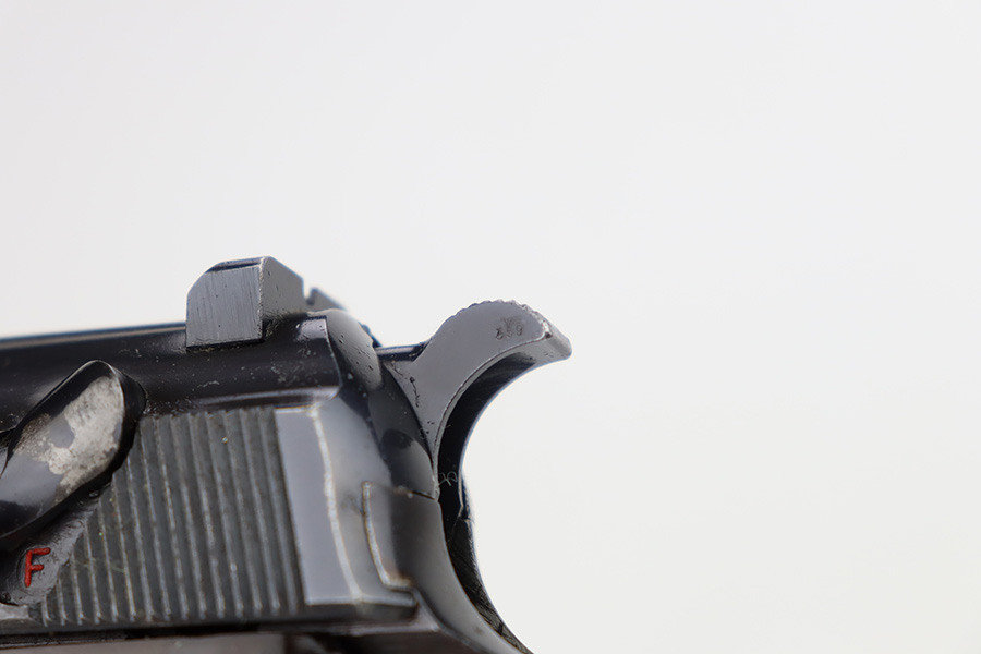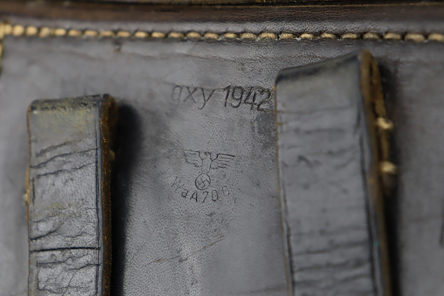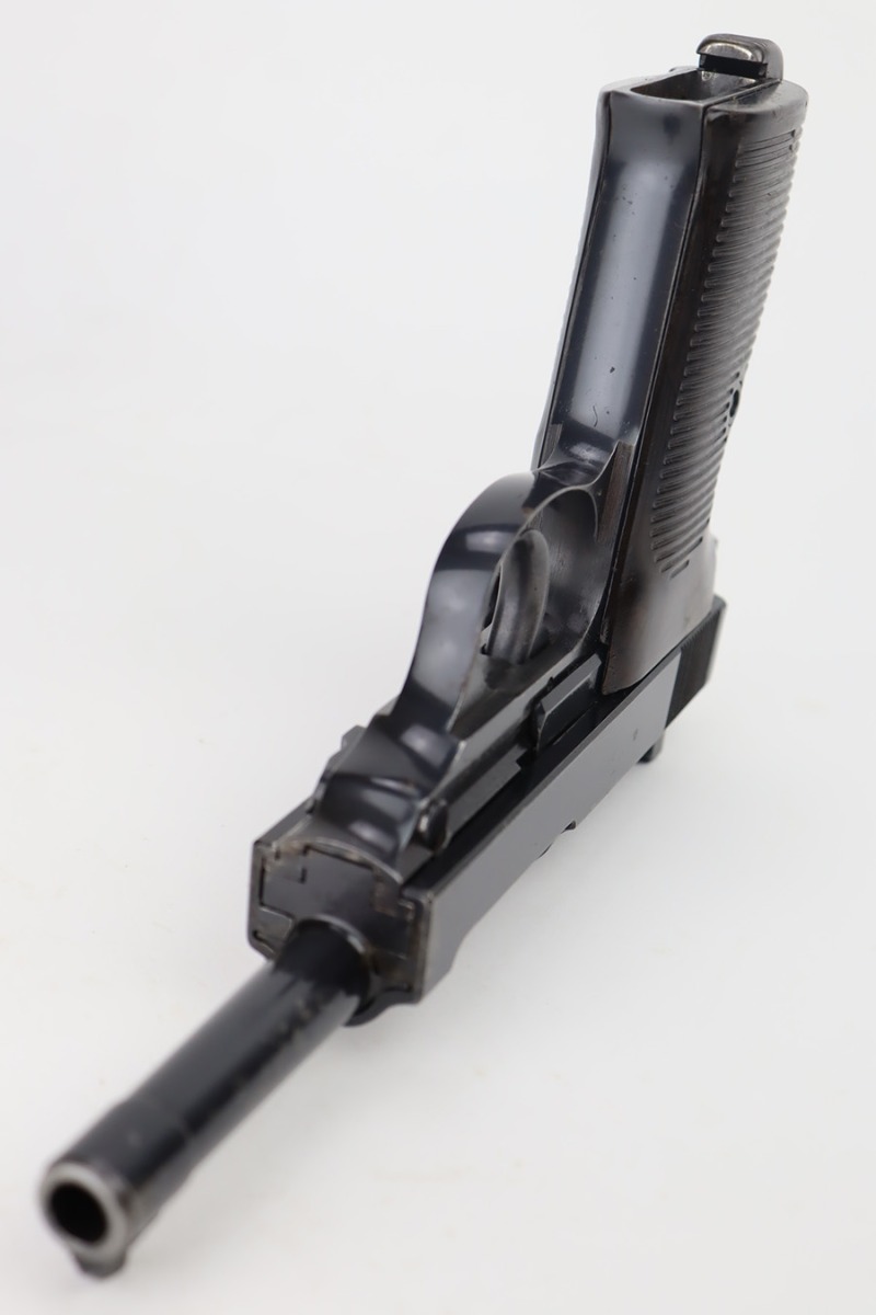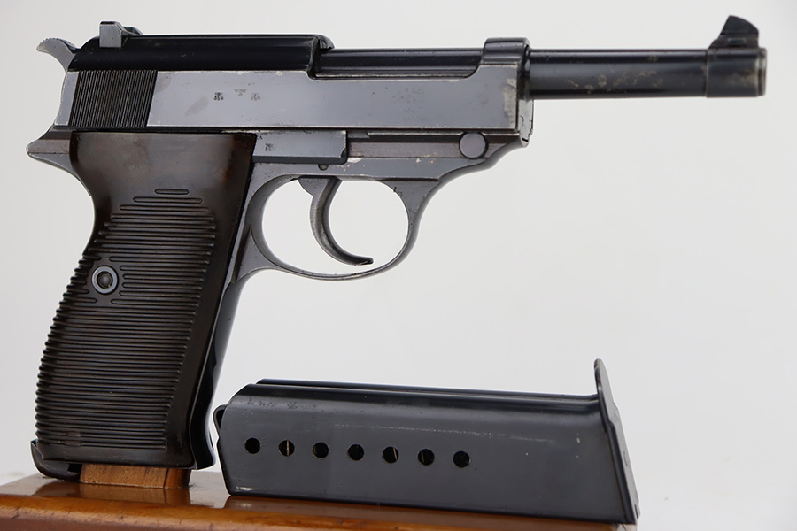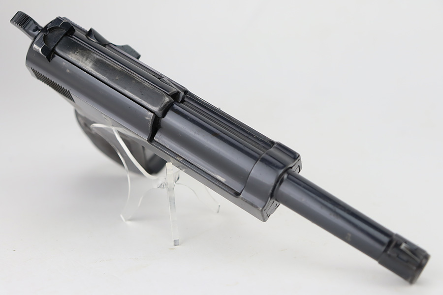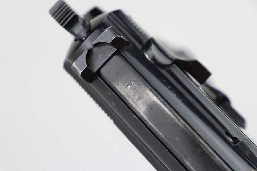 9/26/23 – This is a nice AC 41 Walther P.38 issued to the Nazi military in 1941. All matching with the proper “Eagle 359” military proofs throughout. This is a 2nd variation example with no “ac” on the trigger guard. Comes as a rig with a very nice 1942-dated holster and two “Eagle 359” marked magazines. The bluing on the gun rates roughly 85%. The most obvious sign of wear is splotchy discoloration on the slide and barrel. An area of minor wear on the top plate. Fitted with excellent “Eagle 359” proofed grips. Excellent bore. De-cocker is functional.