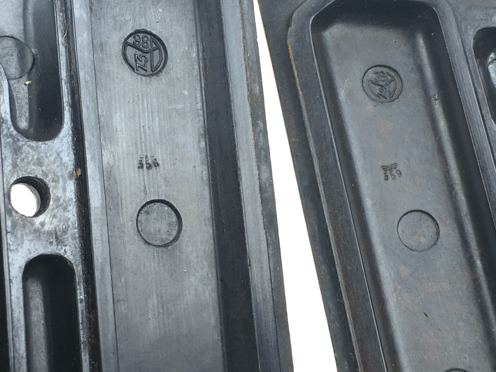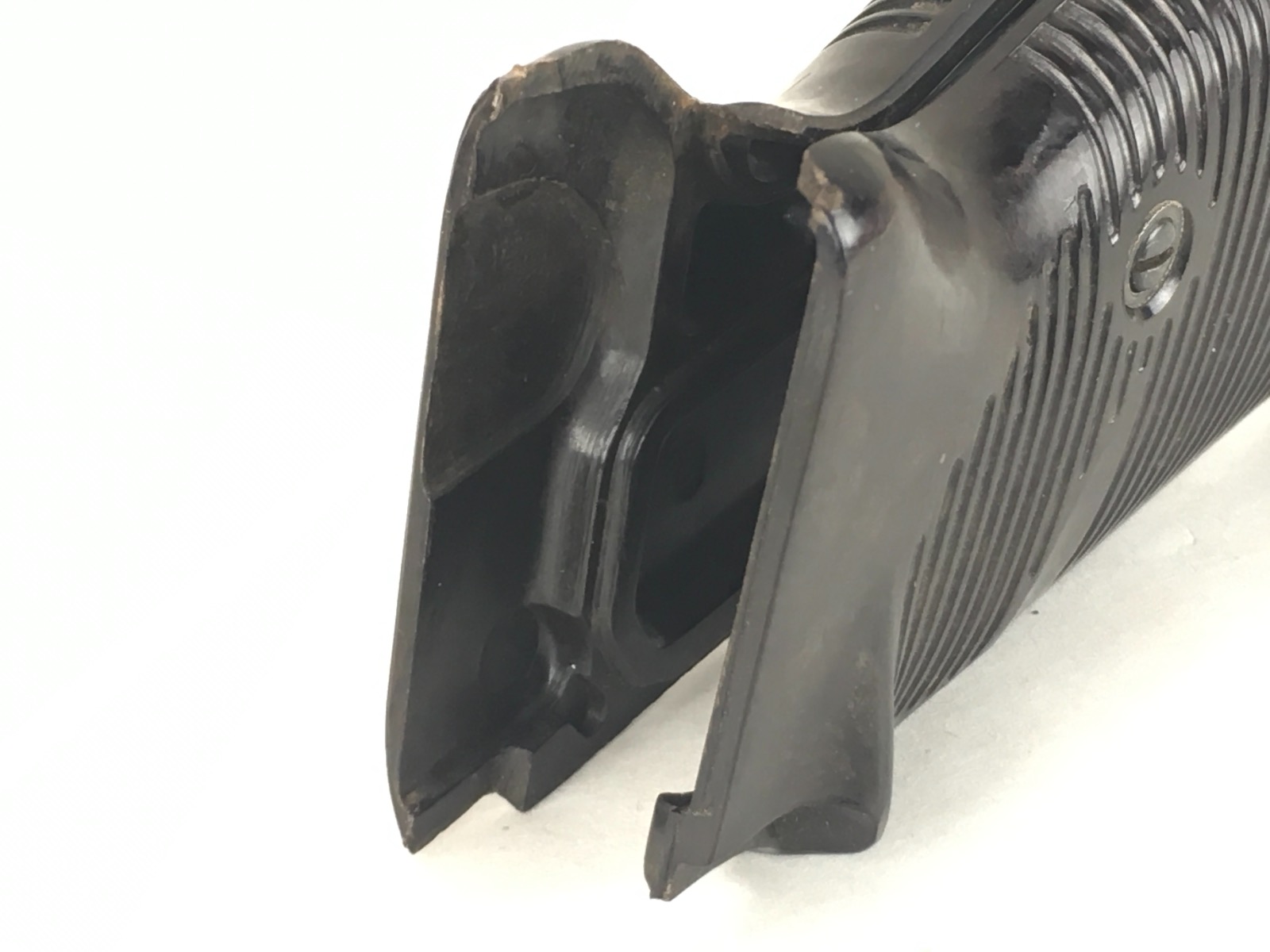3/11/19 – This is an original pair of Walther P.38 grips. The grips are Walther eagle 359 proof stamped on the interior of each panel. This pair of grips are not “Russian cut”. Warren Buxton’s resource book on P.38s indicates that Walther cut their early grips for the experimental open safety sear. The adjustment cut is on one panel only and a very minor shaving. This is an excellent, all original pair of grips. There are no flaws on these grips.
