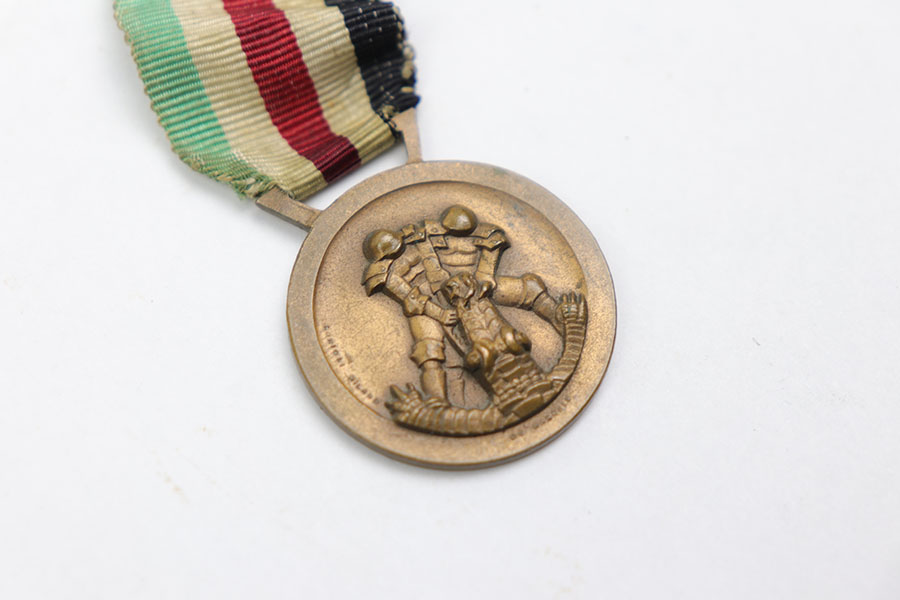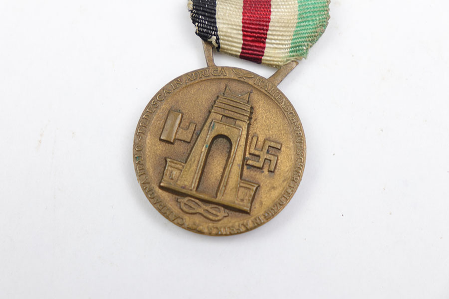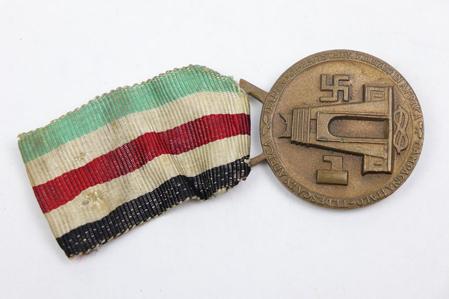 12/31/20 – This is an original Afrika Corps award with original ribbon from WW2. This award was given to Italian and German troops who were in the Africa campaign. The ribbon shows aging and has some light wear. The medal is in great shape with normal patina / aging.