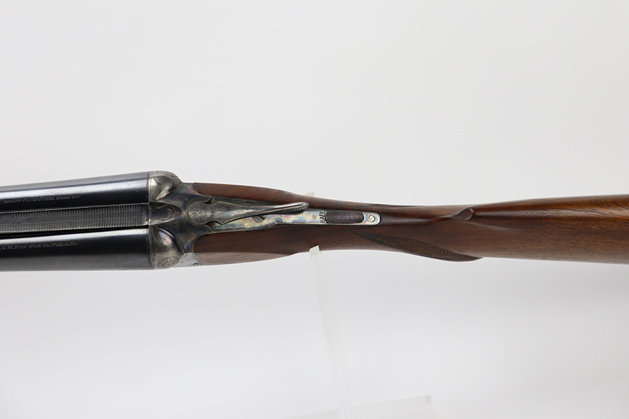 11/3/23 – This is a very nice example of an AH Fox Side by Side Shotgun, manufactured in Philadelphia in the early 1900’s and chambered in 12 GA. It is all matching and has retained about 90% of its original finish. There are just some very light scratches and handling marks here and there and some minor thinning on the underside of the receiver. Beautiful case-hardening on the receiver. Excellent wood furniture. Near-mint bores.
