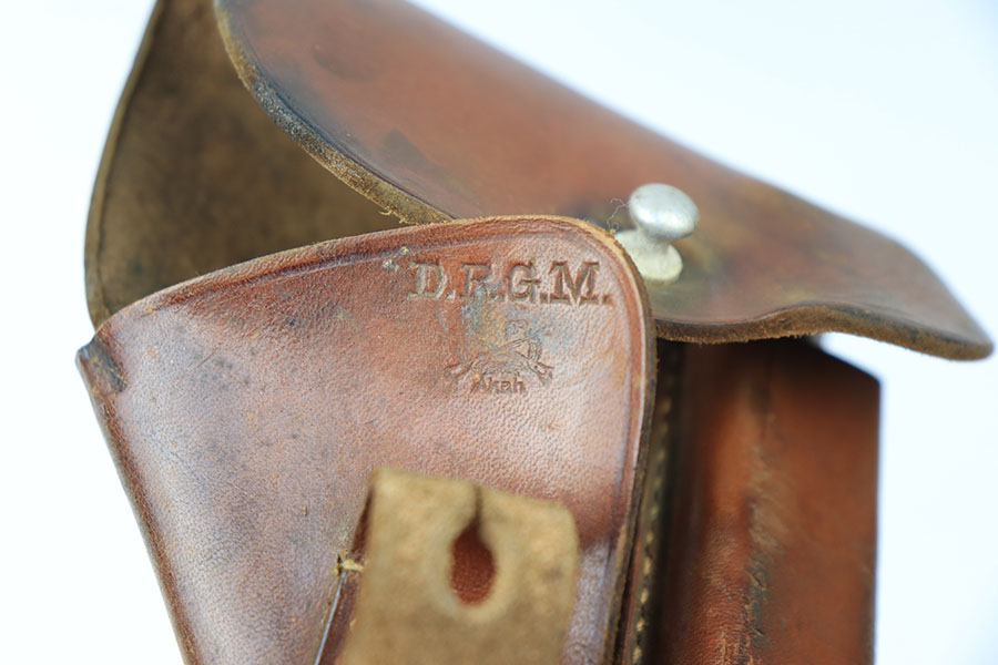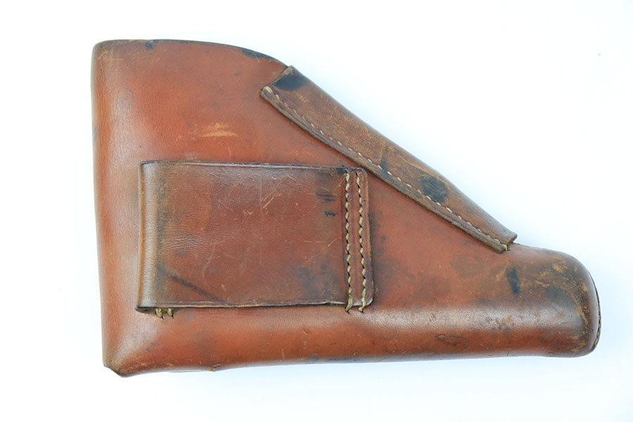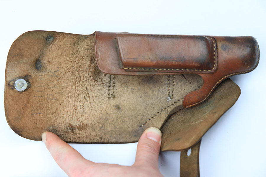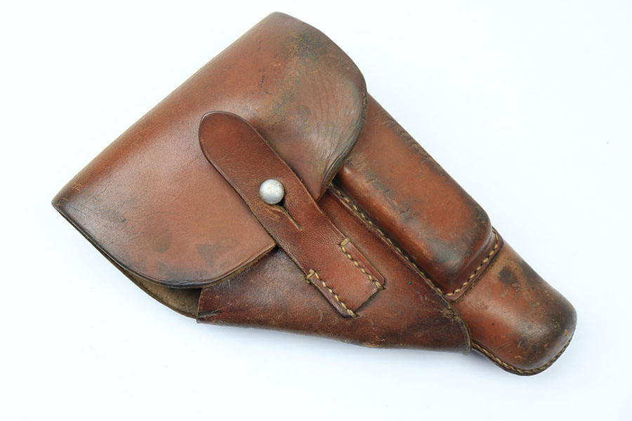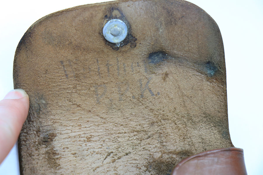 6/1/21 – This is an original AKAH Walther PPK Holster from WW2. The holster is in great overall condition with some normal signs of previous use and aging. AKAH stamped under the closure strap. There’s still a faint Walther PPK ink stamp on the interior leather. All original stitching is intact.