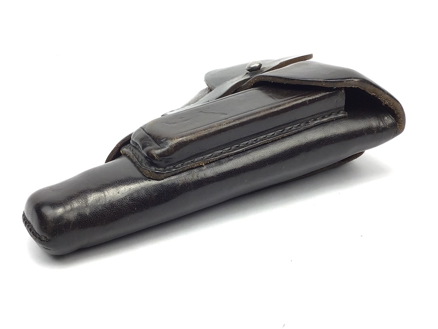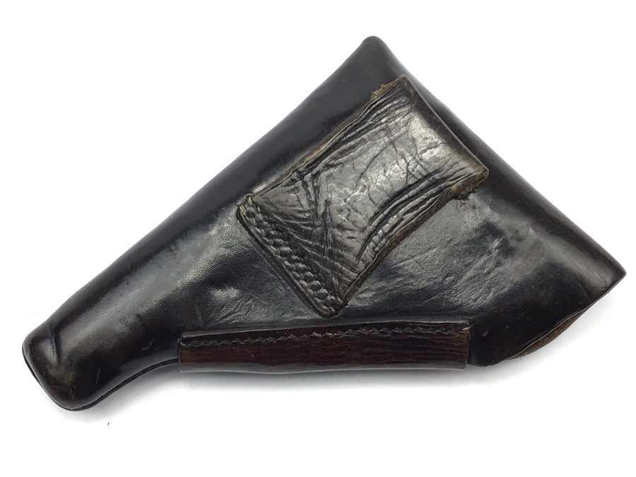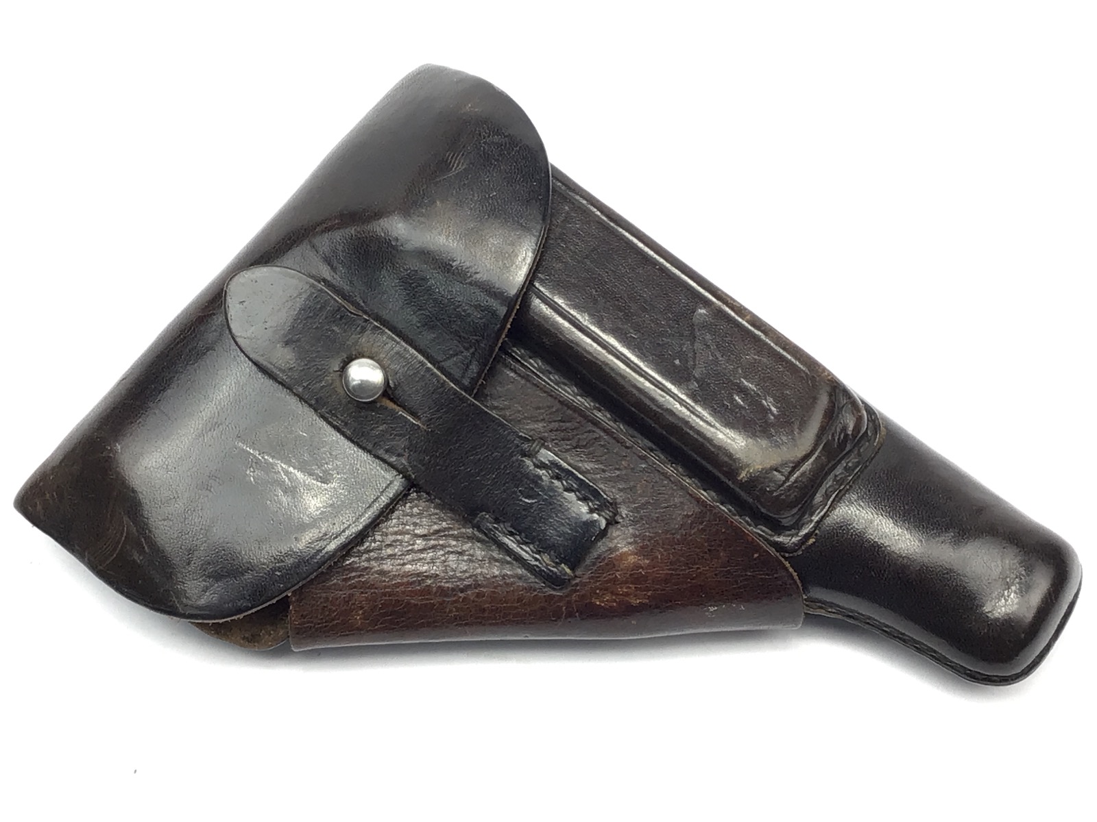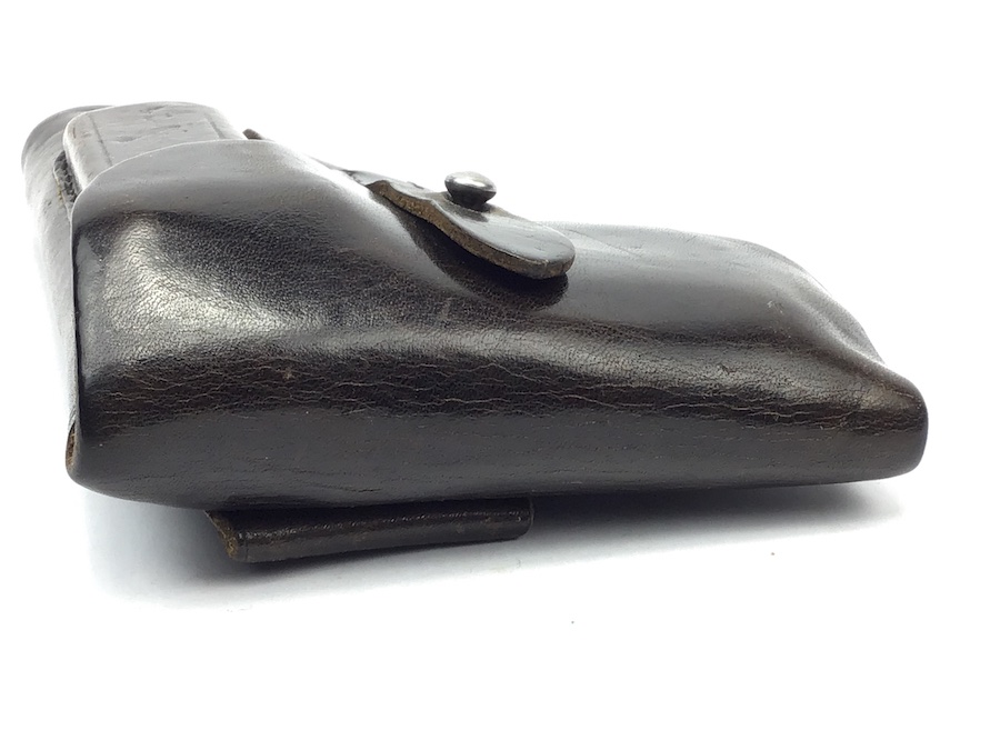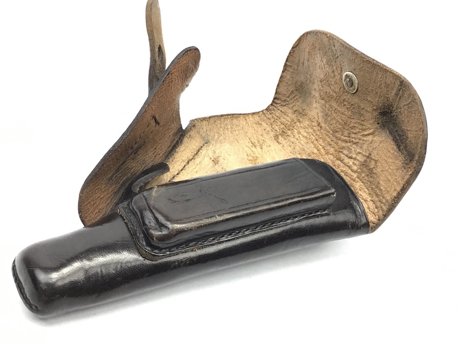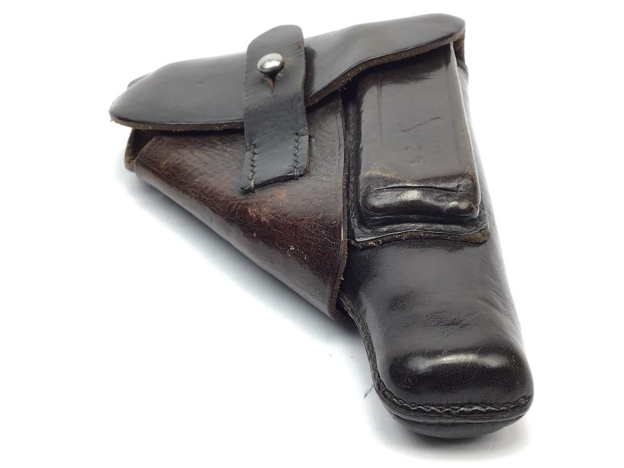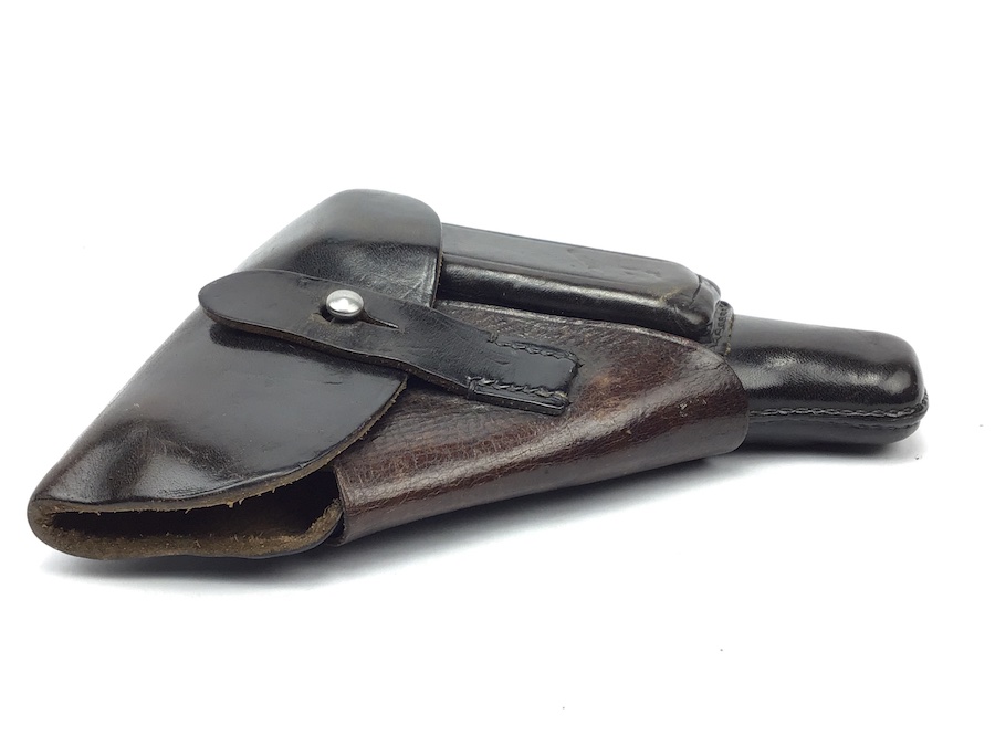 10/7/20 – This is an original AKAH Walther PP holster. The holster has minimal surface wear. The leather and stitching are  completely intact. There is a distinct AKAH – DRGM maker stamp under the front strap. Faint, but, visible “WALTHER PP” ink stamp under the closure flap. Clean interior. Guaranteed original and authentic. Would be appropriate for any WW2 production Walther PP (including SS).