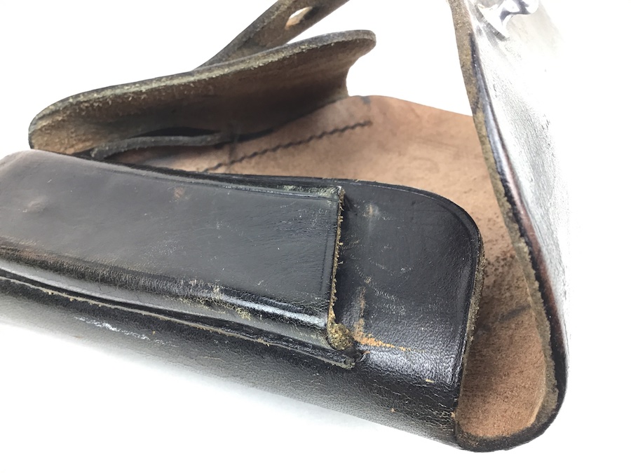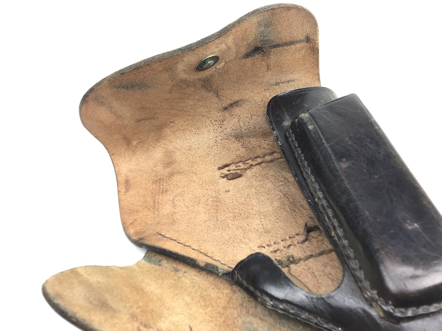 3/24/20 – This is an original AKAH Walther PP holster. The holster has minimal surface wear. The leather and stitching are completely intact. There is a distinct AKAH – DRGM maker stamp under the front strap. Appropriate for an SS or Commercial Walther PP. Clean interior. Guaranteed original and authentic.