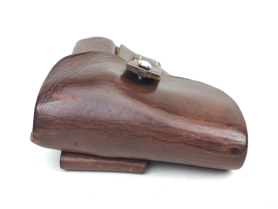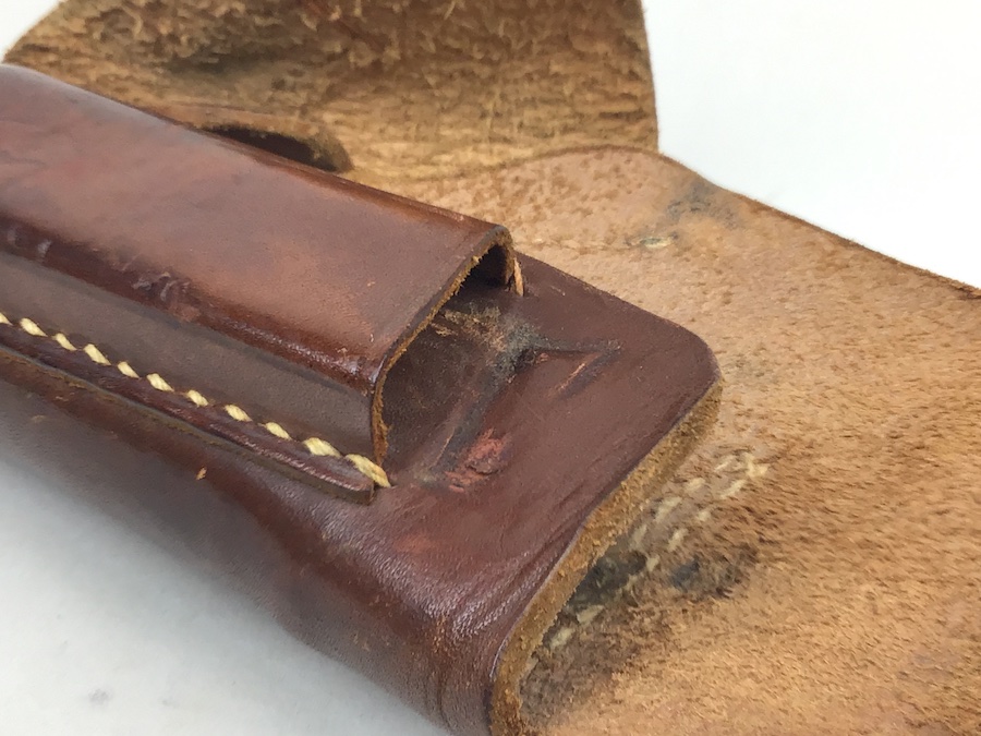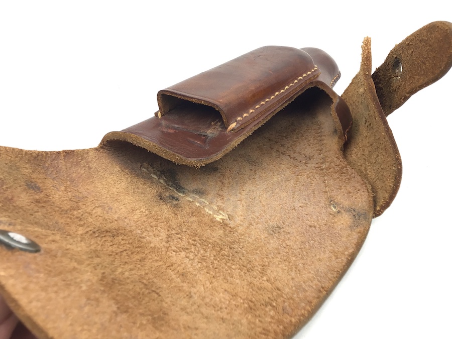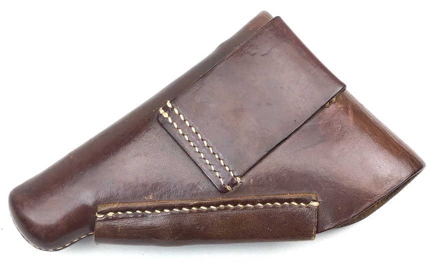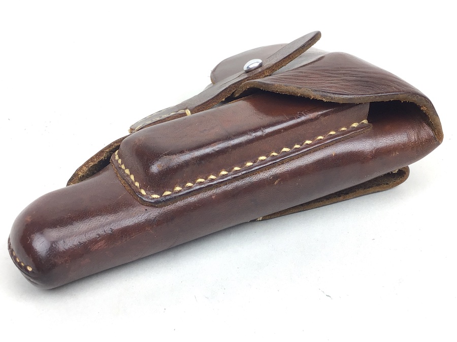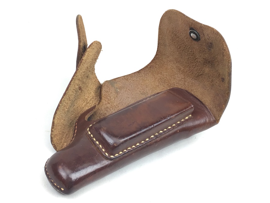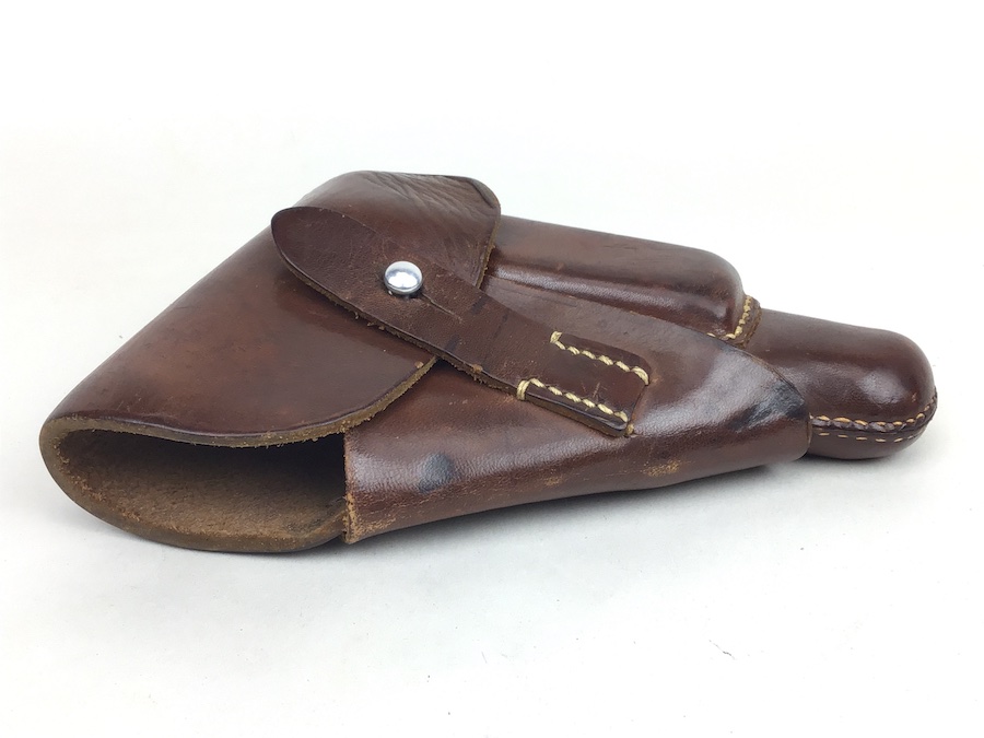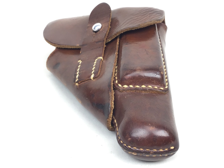 7/13/20 – This is an original AKAH Walther PPK holster from WW2. The holster is AKAH DRGM maker stamped under the closure strap. The brown leather is strong and fairly firm with no notable flaws. The stitching is all tight and original with no stitching flaws. Overall a great collectible-grade holster. The interior leather is clean and unmarked. Guaranteed original – appropriate for wartime production PPK’s.