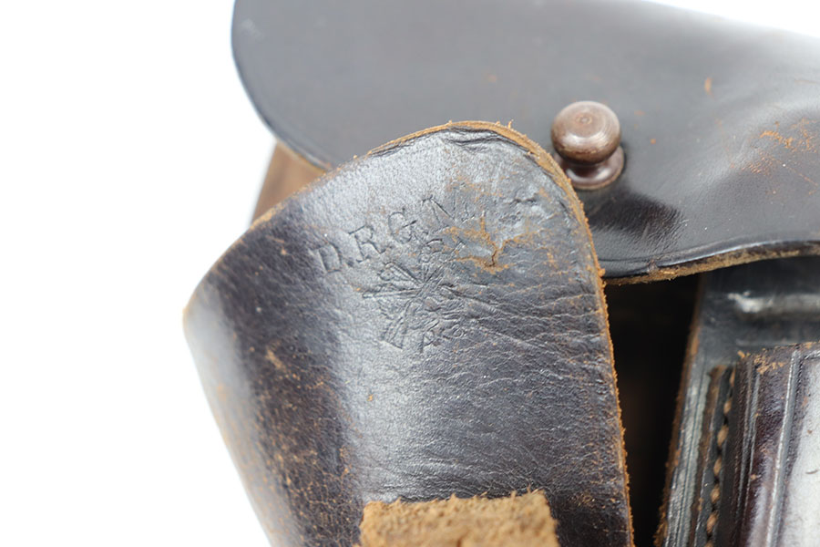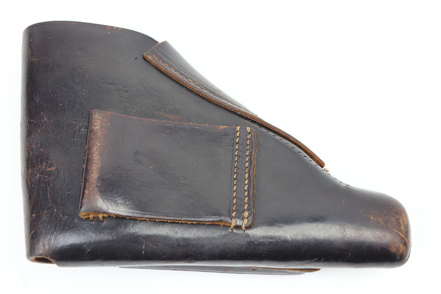 1/28/21 – This is an original WW2 production AKAH Walther PPK holster. The holster is in good overall condition with some normal wear and signs of use. AKAH DRGM maker stamped under the closure strap. The back of the holster has some stitch holes that appear to have been made in error. The stitching is all original and in tact.