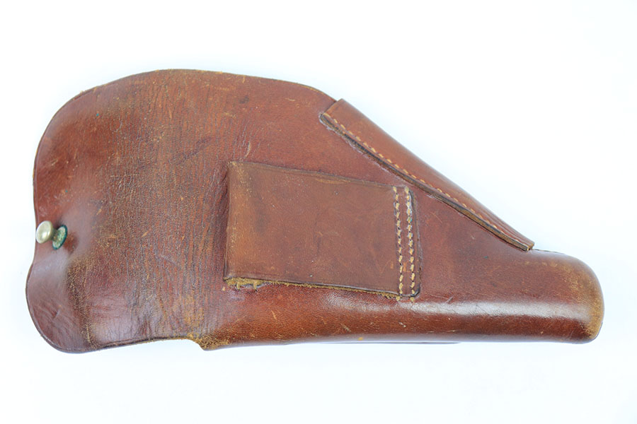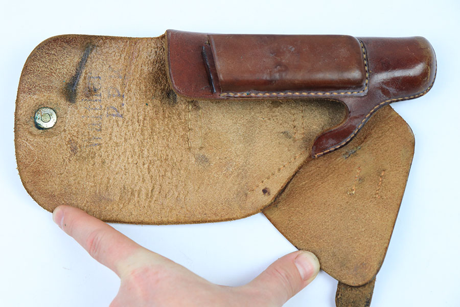 7/19/21 – This is an original AKAH PPK holster from WW2. The holster is in great overall condition with some normal wear and signs of aging. The top leather has some light surface wrinkling. The interior leather has a faint Walther PPK ink stamp. Under the closure strap is an AKAH maker stamp. The stitching is in great condition and completely in tact. No major issues, a nice collector example.