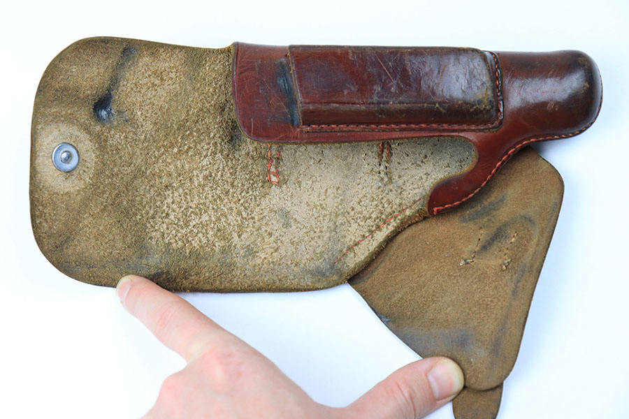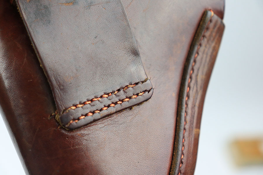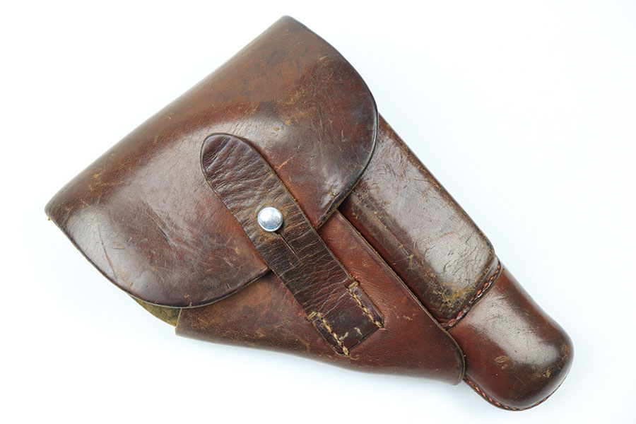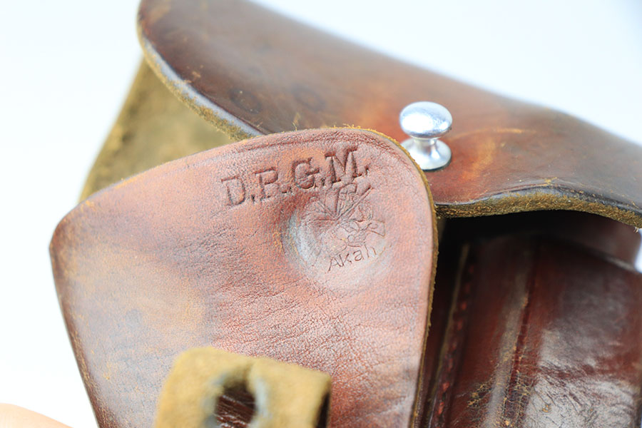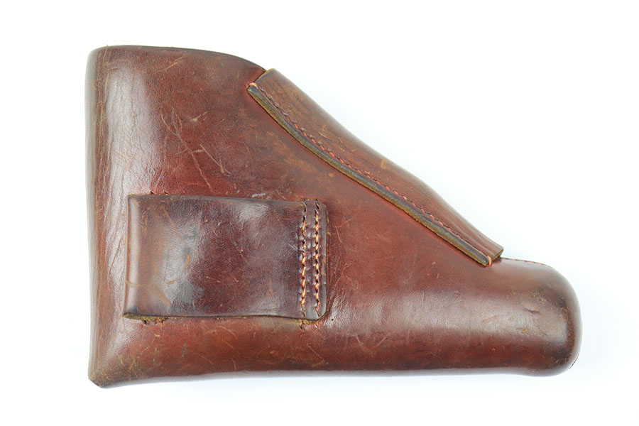 8/6/21 – This is an original AKAH Walther PPK holster from WW2. The holster is in great overall condition with some typical use wear and aging. The leather has normal pliability. the stitching is all in tact except for a few missing stitches on the belt loop. This doesn’t affect the functionality of the belt loop however. The interior leather has some mild wear but no excessive damage.