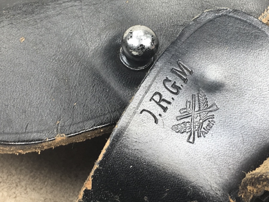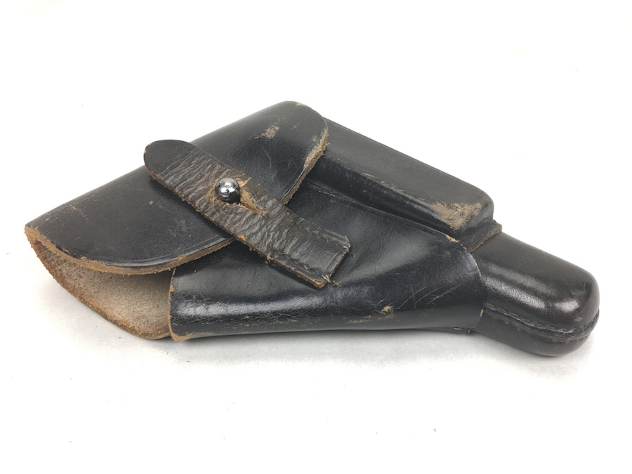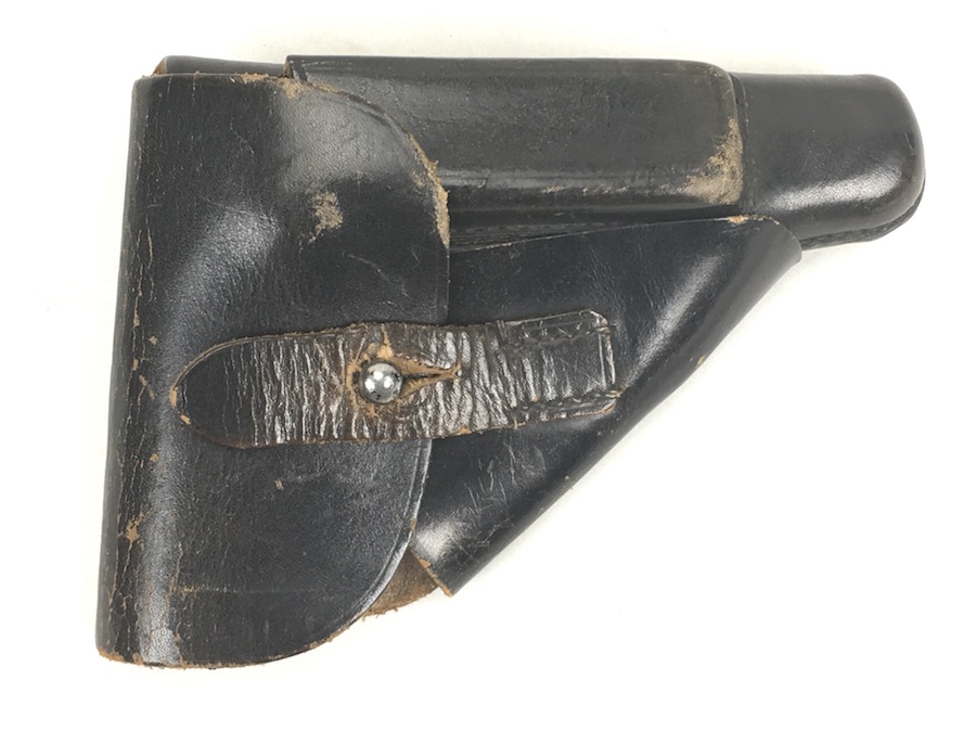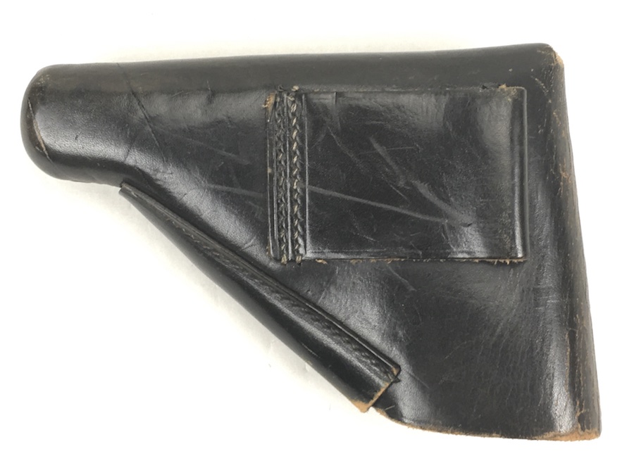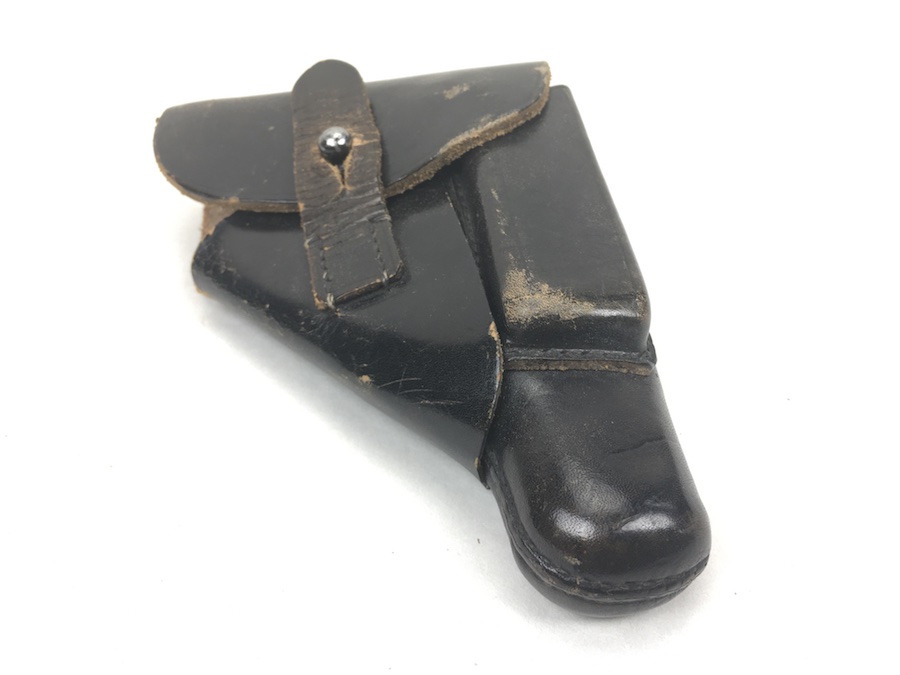 6/26/19 – This is an original AKAH Walther PPK holster. The holster has minimal surface wear on the magazine pouch and the closure flap. A bit of use wear at the stud hole in the strap. The leather and stitching are completely intact. There is an AKAH maker stamp under the closure strap. The Walther PPK ink stamp is clearly visible on the interior leather. Guaranteed original and authentic.