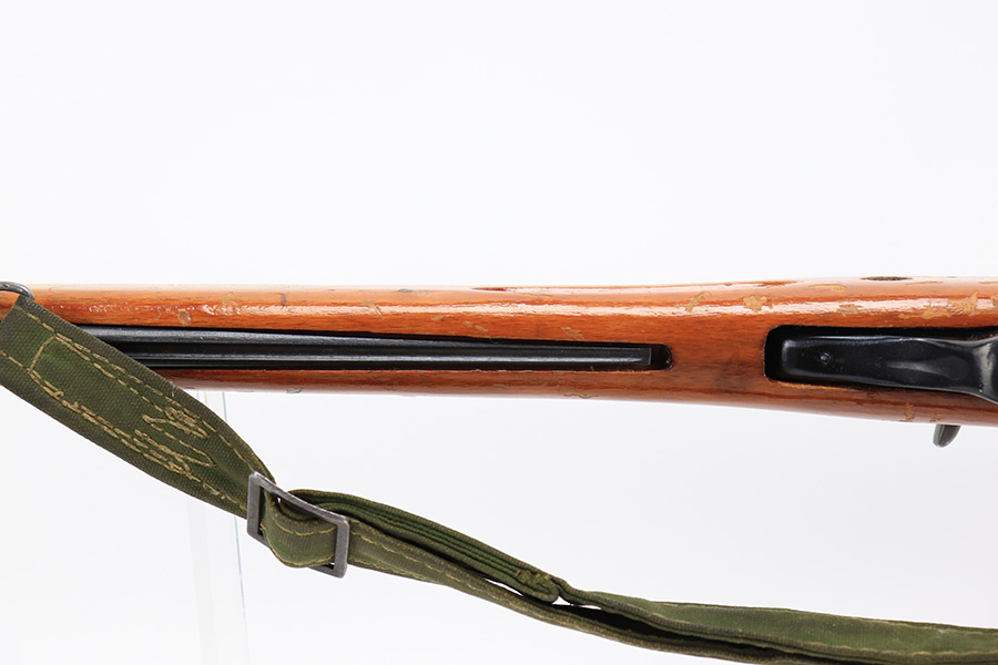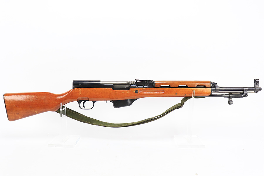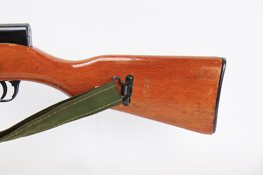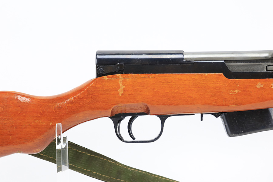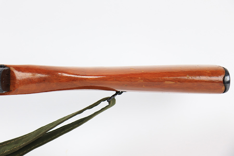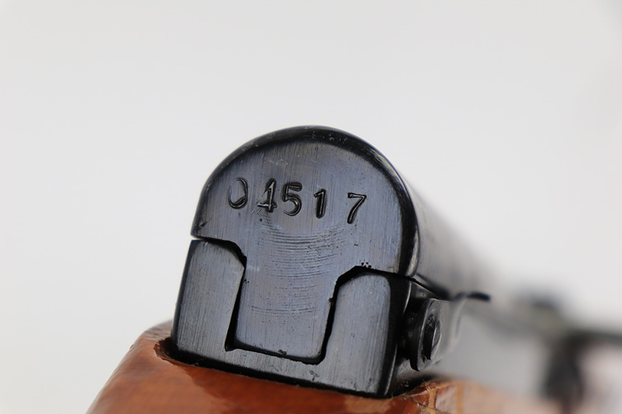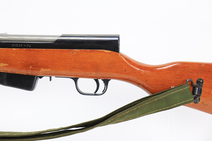 6/2/23 – This is an excellent example of an Albanian SKS Type 56 manufactured at the Gramsh Factory in 1978. It is completely matching, including the wood stock, but has an import mark on the underside of the barrel. The metal parts have retained nearly all of their finish. There are just some tiny scratches and handling marks here and there. Overall, the wood furniture is excellent, but there are some small chips in the wood finish and minor scuffs here and there. Mint bore. Comes with a green canvas sling.