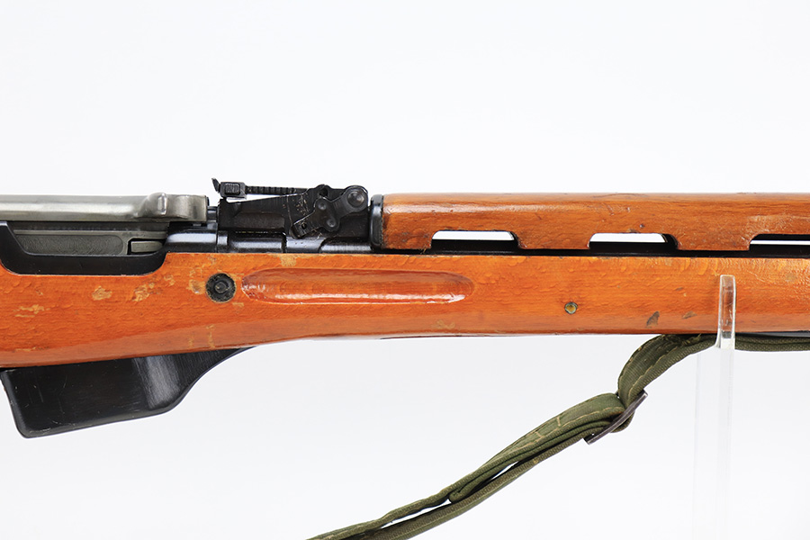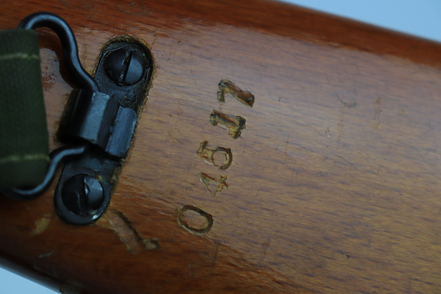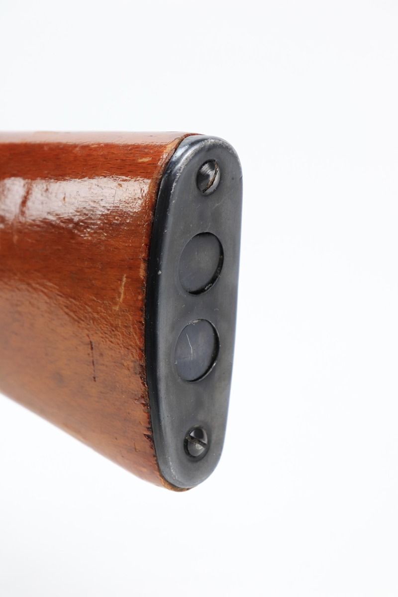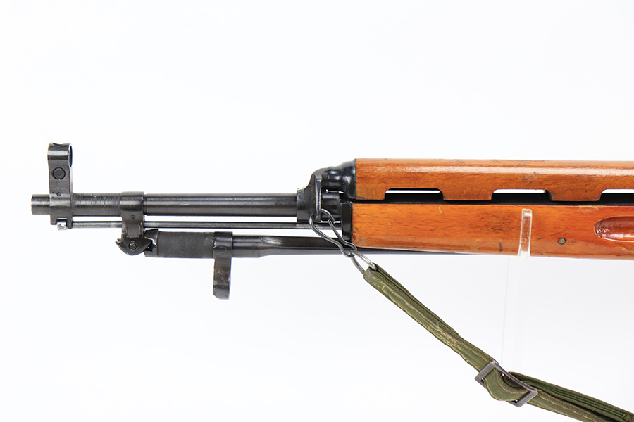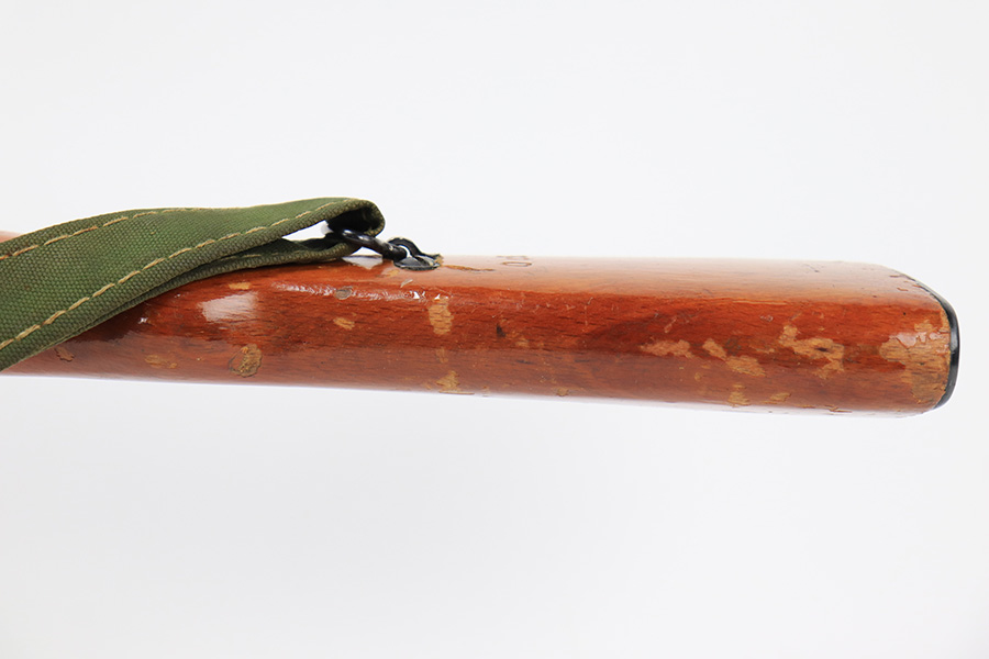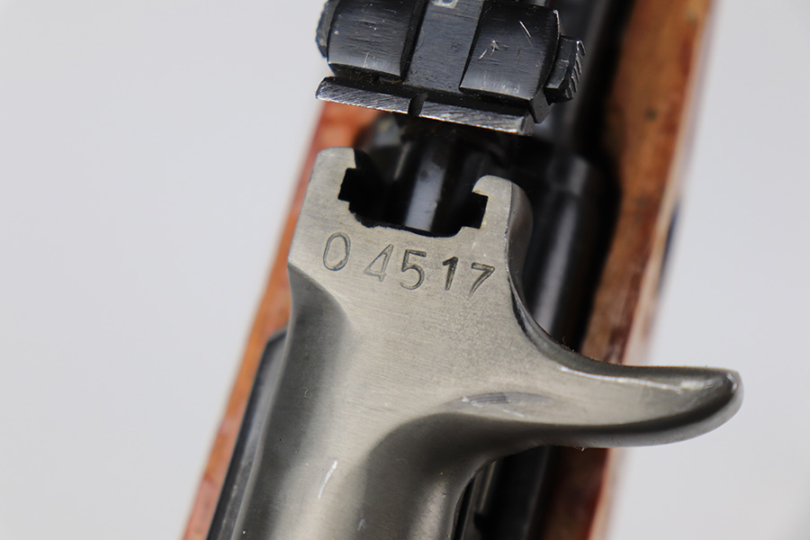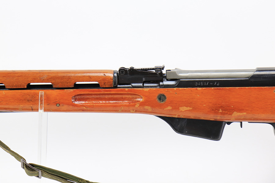 6/2/23 – This is an excellent example of an Albanian SKS Type 56 manufactured at the Gramsh Factory in 1978. It is completely matching, including the wood stock, but has an import mark on the underside of the barrel. The metal parts have retained nearly all of their finish. There are just some tiny scratches and handling marks here and there. Overall, the wood furniture is excellent, but there are some small chips in the wood finish and minor scuffs here and there. Mint bore. Comes with a green canvas sling.