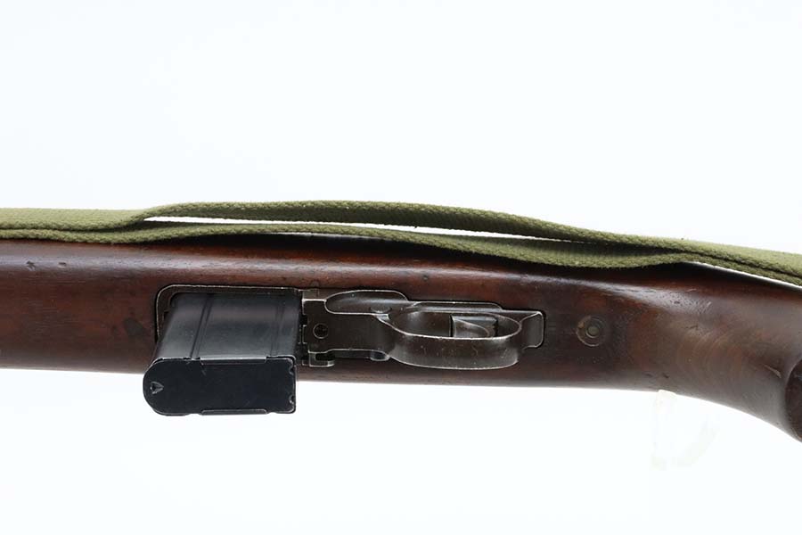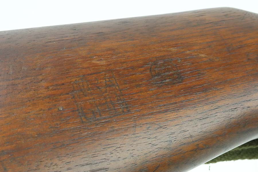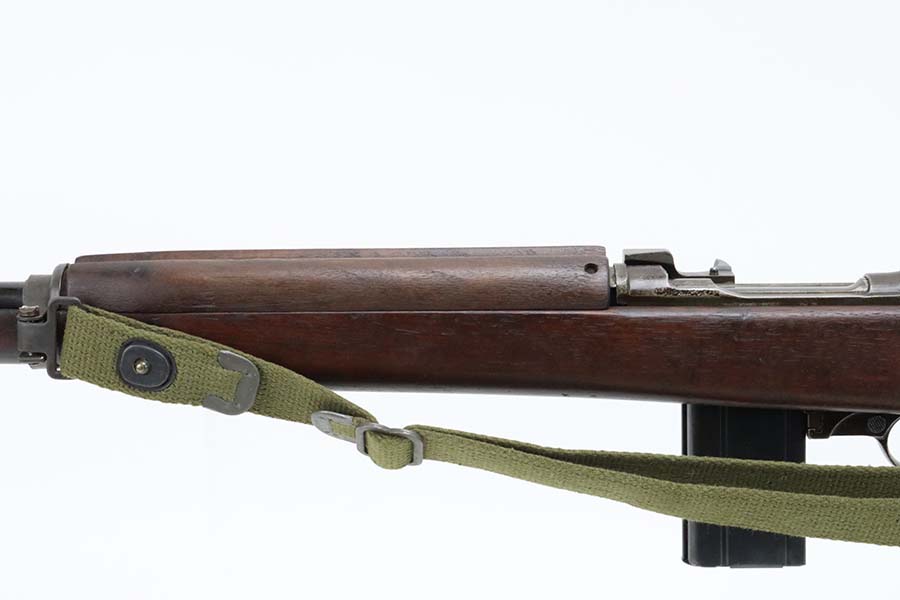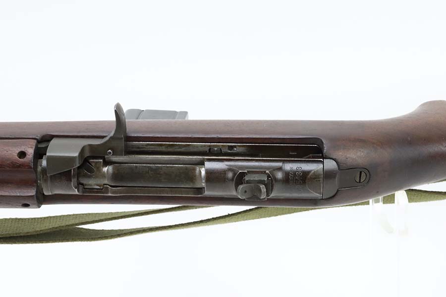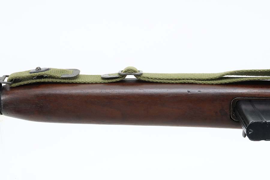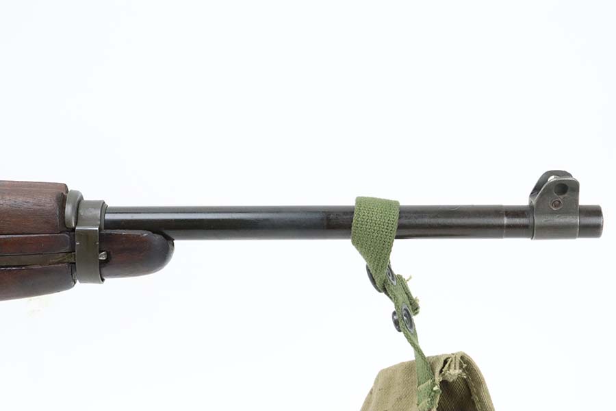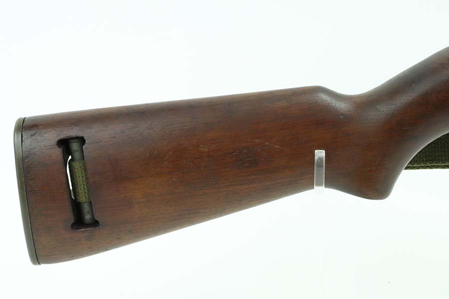 3/20/24 – This is an excellent example of an all-correct Winchester M1 Carbine issued to the US military in 1942. All correct Winchester-marked parts, including the stock and handguard. Barrel is dated 12-42. It comes with one magazine, a 1944-dated muzzle cover, oiler, and canvas sling. The metal parts have retained about 90% of their original finish with general high edge wear and some discoloration on the receiver. Excellent wood furniture. Mint bore.