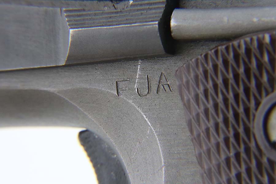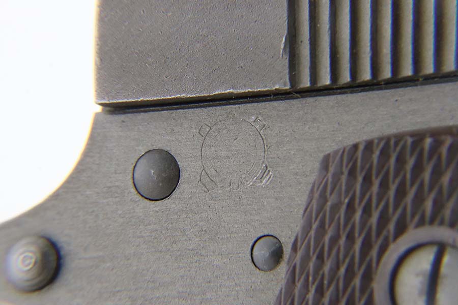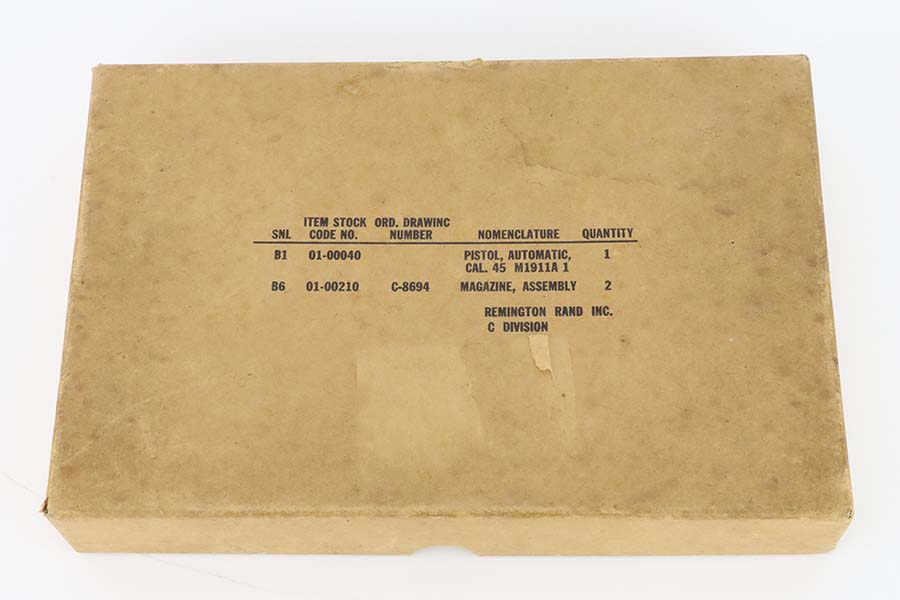 3/18/24 – This is a mint example of a Remington Rand 1911A1 issued to the US military in 1945. It is all correct with a correct “HS” marked High Standard barrel. Comes in its original cardboard “craft box” and two magazines. The gun has retained nearly all of its original parkerized finish with just hints of high edge wear. Fitted with period-correct reddish plastic grips. Like-new bore.