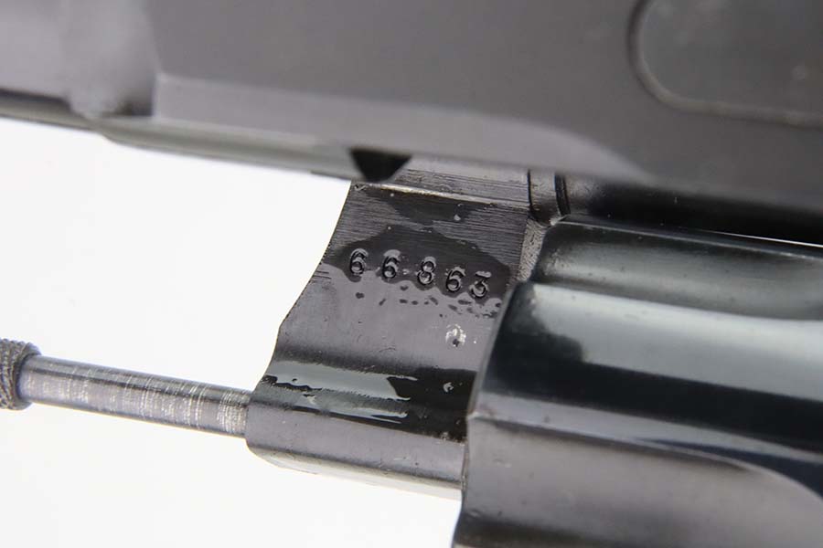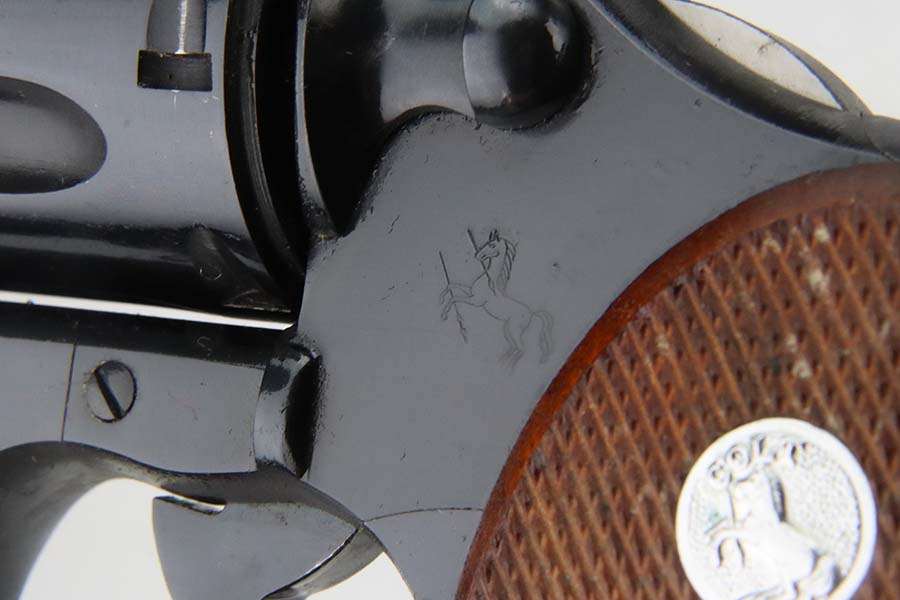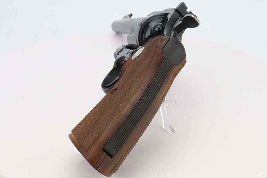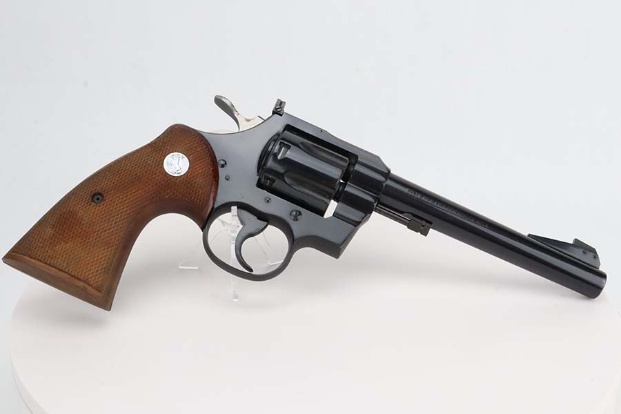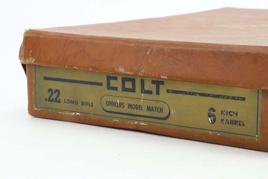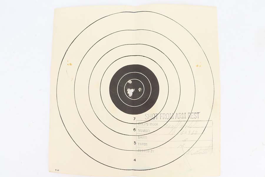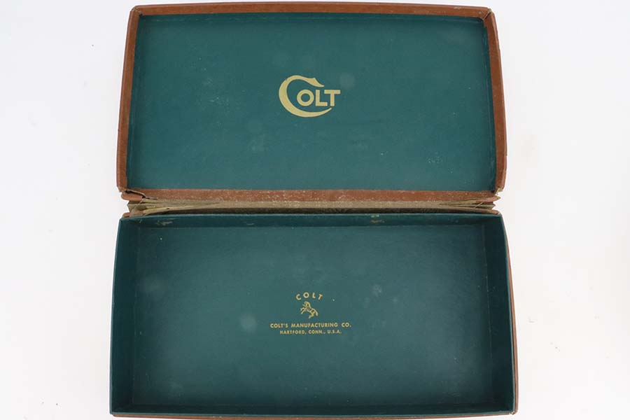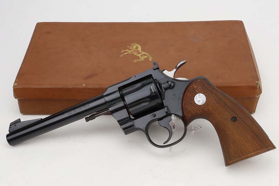 3/7/24 – This is a mint example of a Colt Officers Model Match Revolver, manufactured in 1953 and chambered in .22 LR. It comes with a proper box (not numbered), owners manual, and its original matching-numbered test target. The gun is mint with essentially no signs of wear or use – barely even a hint of a roll mark on the cylinder. Beautiful wood grips. Stone-mint bore.