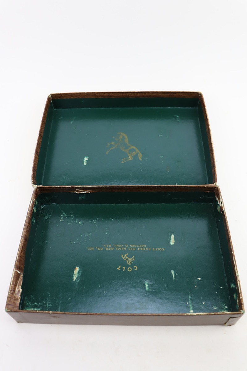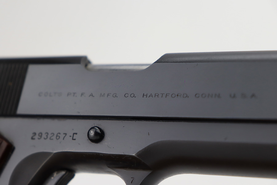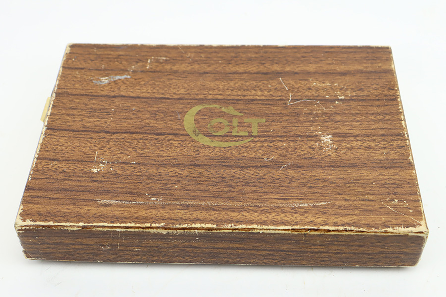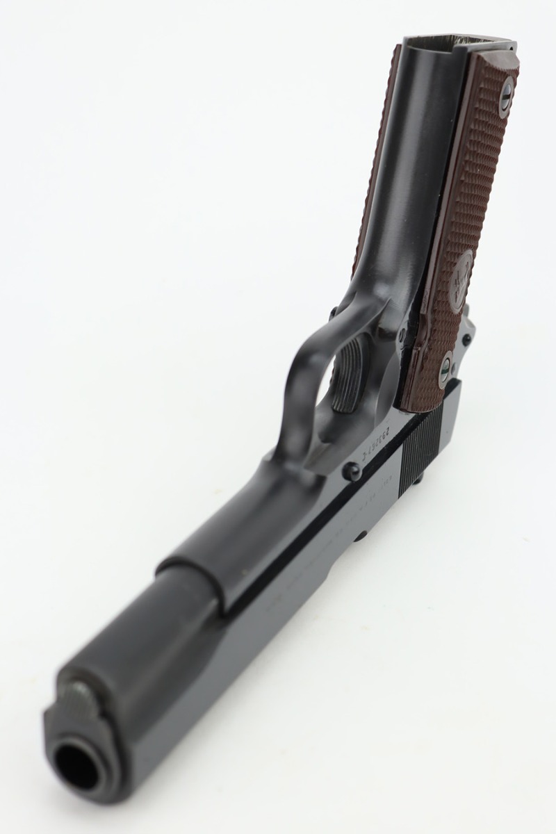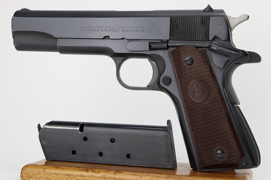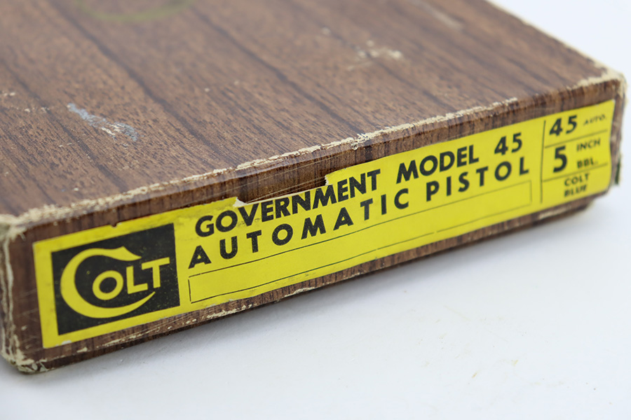 12/5/23 – This is a like-new Colt Government Model from 1963, chambered in .45 ACP. It comes with a period-correct box (not numbered) and one proper magazine. The gun is like-new with no signs of wear or use. Fitted with excellent reddish plastic grips. Mint bore.