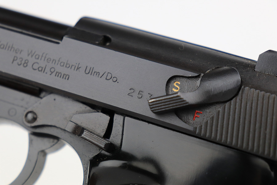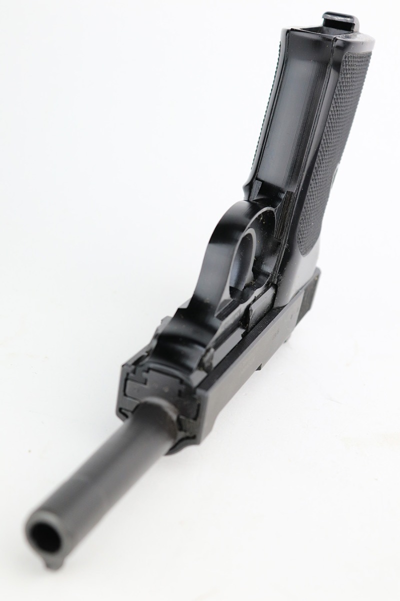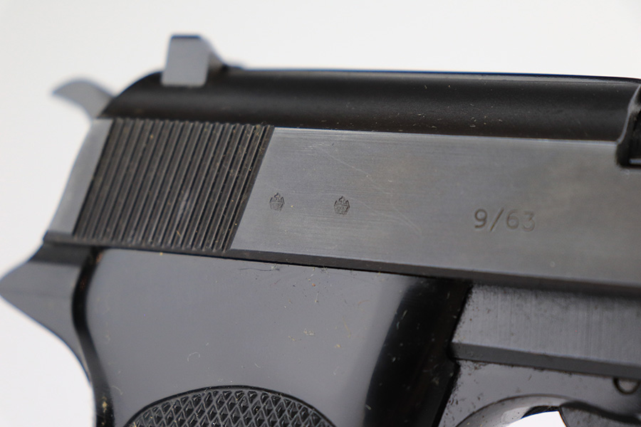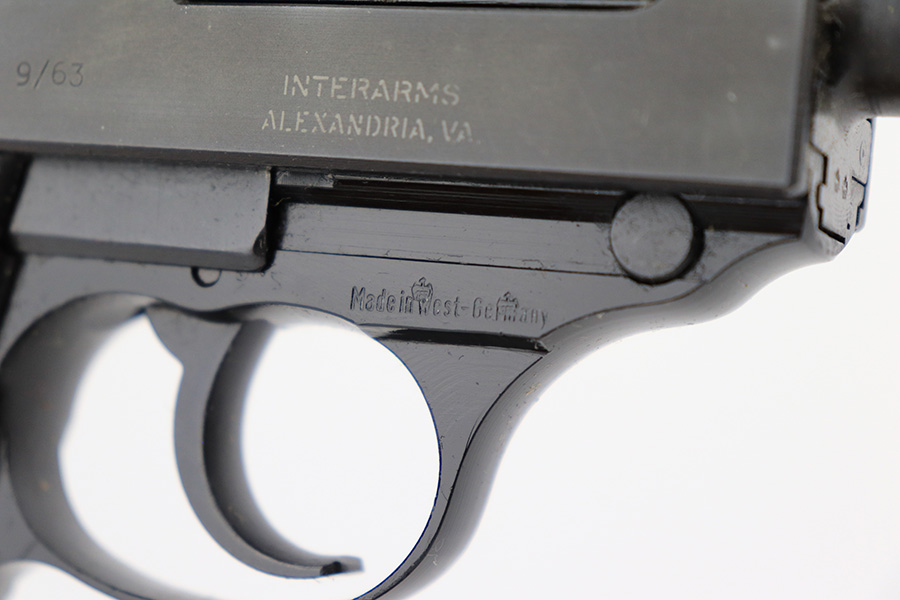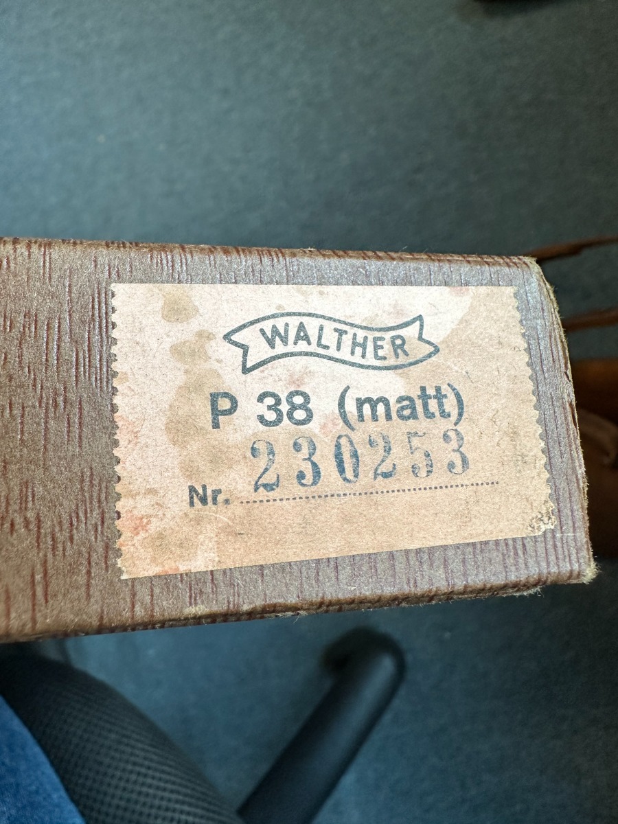 5/22/23 – This is a like-new example of a Walther P.38 manufactured in September of 1963. All matching with the proper West German proofs throughout. Import mark on the right side of the slide and “Made in Germany” marking on the right side of the frame. It comes with its original matching-numbered box, owners manual, cleaning rod, and two magazines (both dated 9/62). The gun is mint with no real signs of wear or use – just a couple of extremely light surface scuffs on the right side of the slide. Fitted with excellent black plastic grips. The bore is factory-new.