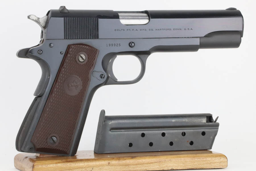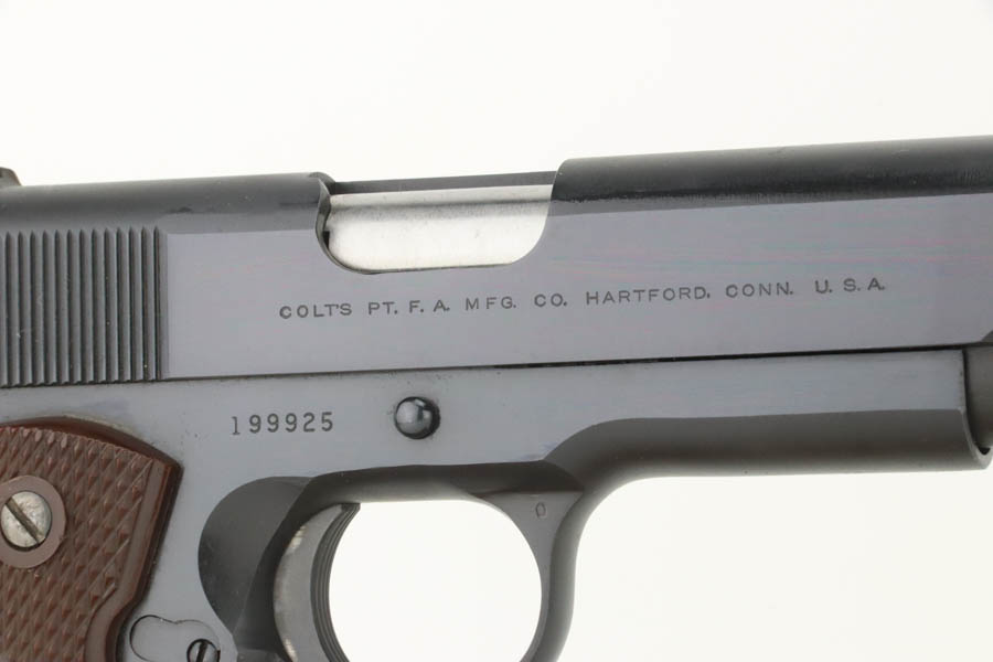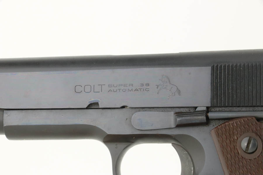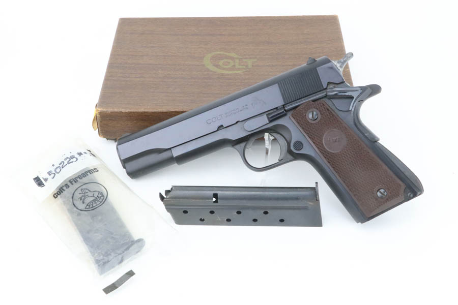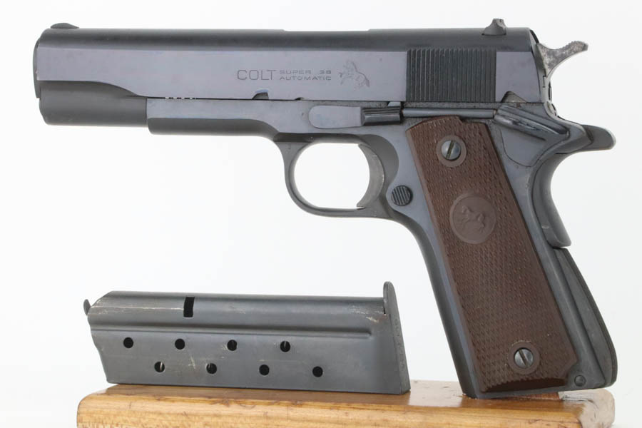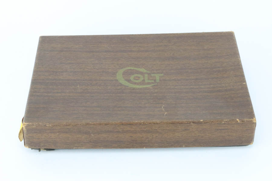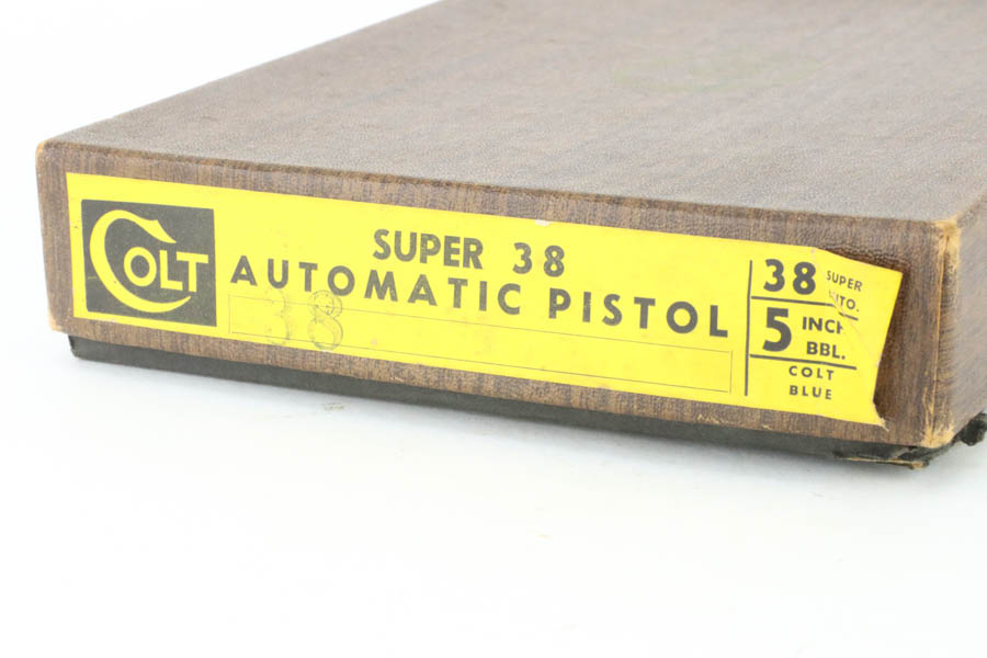 8/6/24 – This is a mint example of a Colt Super .38 pistol, manufactured in 1968. It comes with its original matching-numbered box, owners manual, warranty card, and two magazines. The gun is in mint condition with virtually no signs of wear or use. Fitted with correct reddish plastic grips. Mint bore.