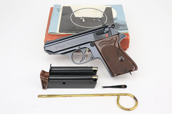 10/4/22 – This is a gorgeous, like-new example of a Walther PPK manufactured in 1968. It is all matching and has the proper West German proofs. No import marks. It comes complete with its original matching box, matching test target, owners manual, cleaning rod, and spare magazine. The gun is in like-new condition with no real signs of wear or use. Comes with excellent brown plastic grips. The bore is factory-new.
