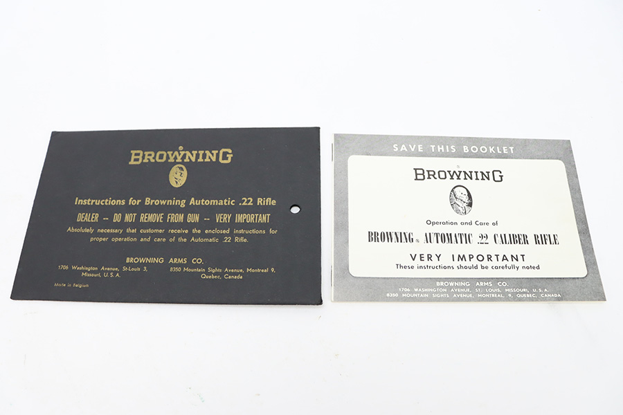 10/6/23 – This is a beautiful, like-new example of a Browning Model SA-22 rifle, manufactured in 1969 and chambered in .22 LR. The gun is mint with no signs of wear or even use. It comes with its original matching-numbered box, wax paper, and owners manual. Stone-mint bore.
