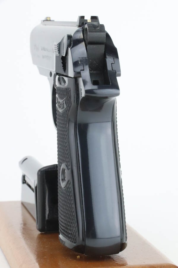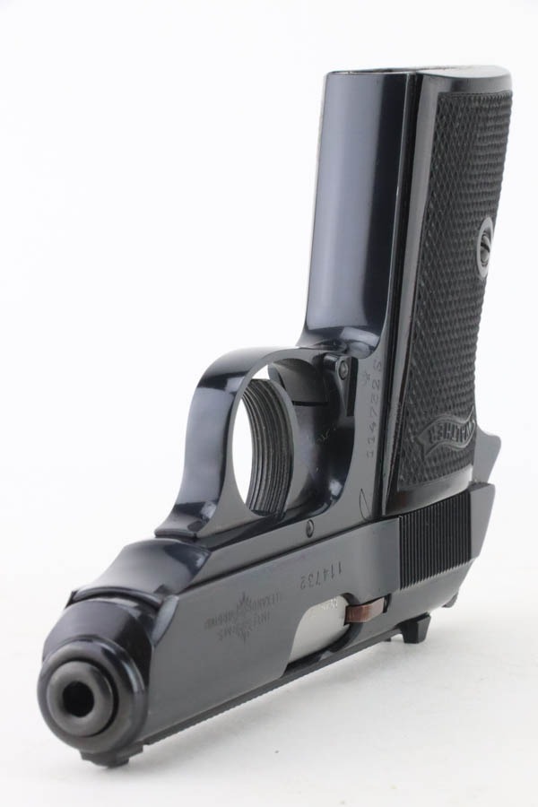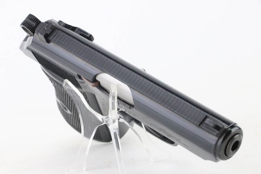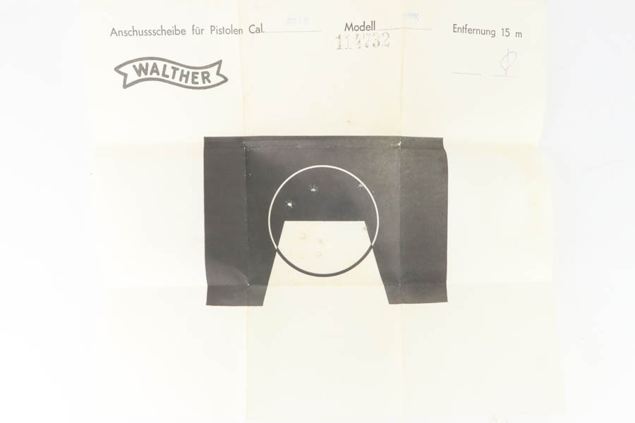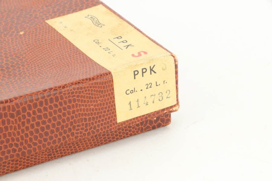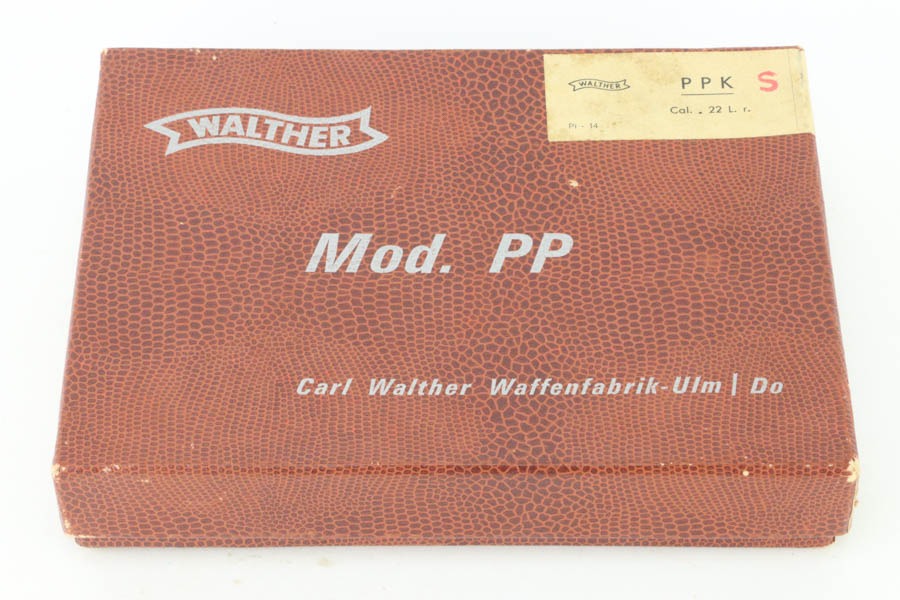 10/11/24 – This is a mint Walther PPK/S from 1969, chambered in .22 LR. All matching and Interarms marked. Comes with its matching-numbered box, matching-numbered test target, owners manual, cleaning rod, one finger extension magazine, and one flat-bottom magazine. The gun itself is mint with essentially no signs of use or wear. Fitted with “Made in Germany” black plastic grips. Mint bore.