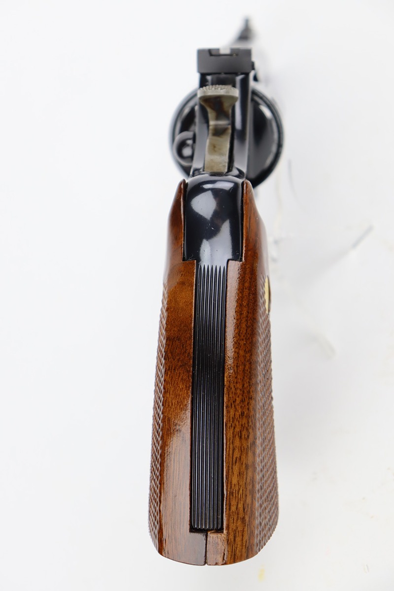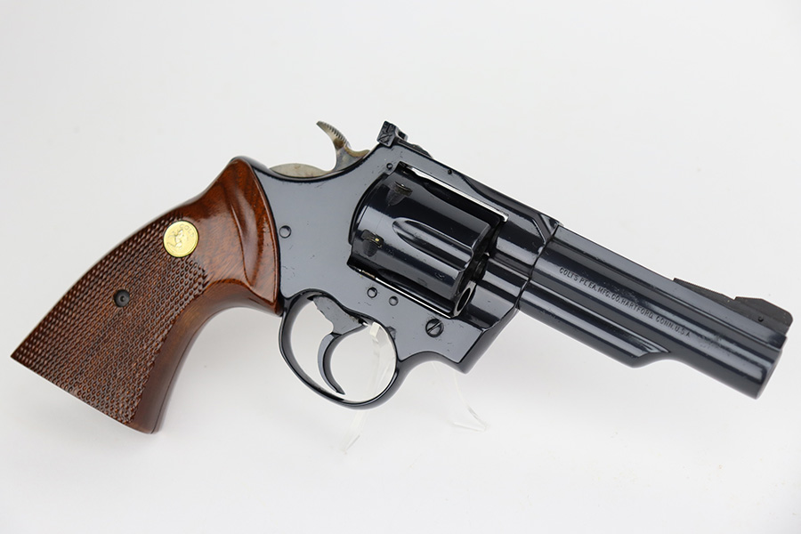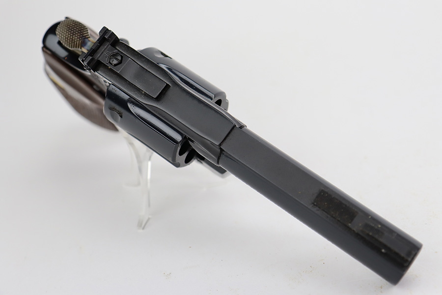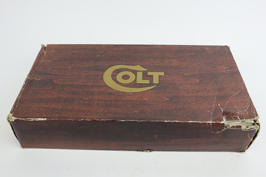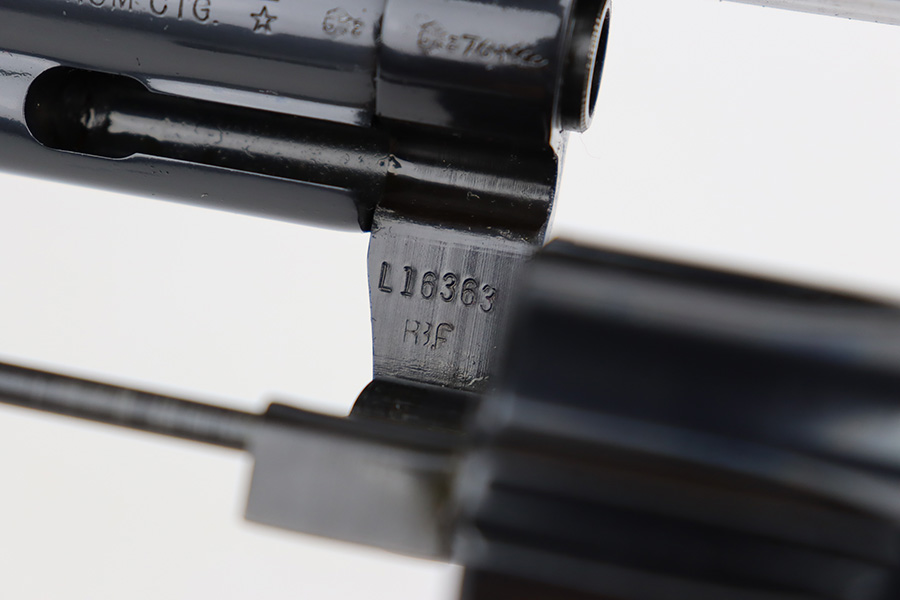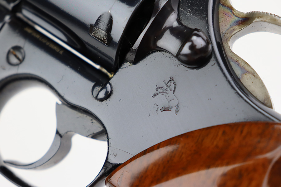 8/8/23 – This is a mint example of a Colt Trooper MK III Revolver, manufactured in 1976 and chambered in .357 Magnum. It is all matching and has West German export markings on the left side of the slide and frame and on the cylinder. Import mark on the left side of the frame, under the cylinder. It comes with its original matching-numbered box and owners manual. The gun is in like-new condition with essentially no signs of wear – barely even a hint of a roll mark on the cylinder. Fitted with excellent hand-checkered wood grips. Mint bore.