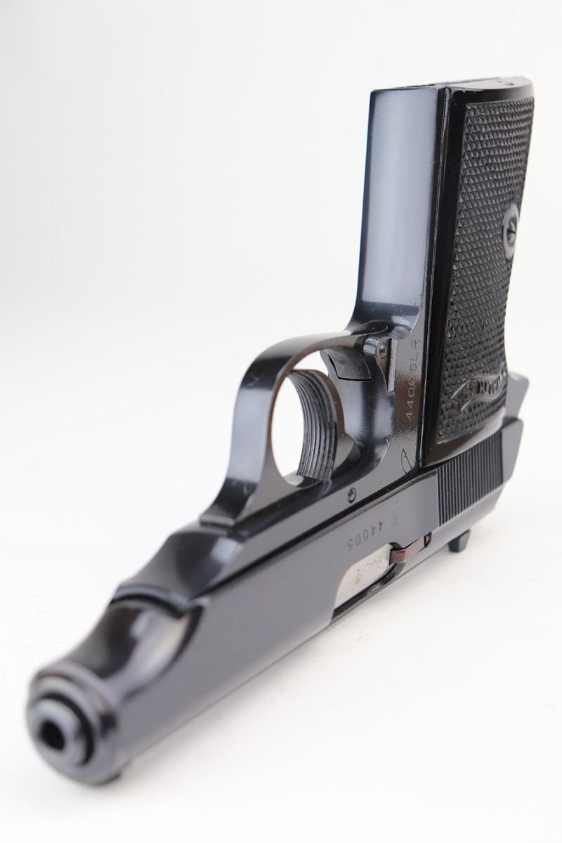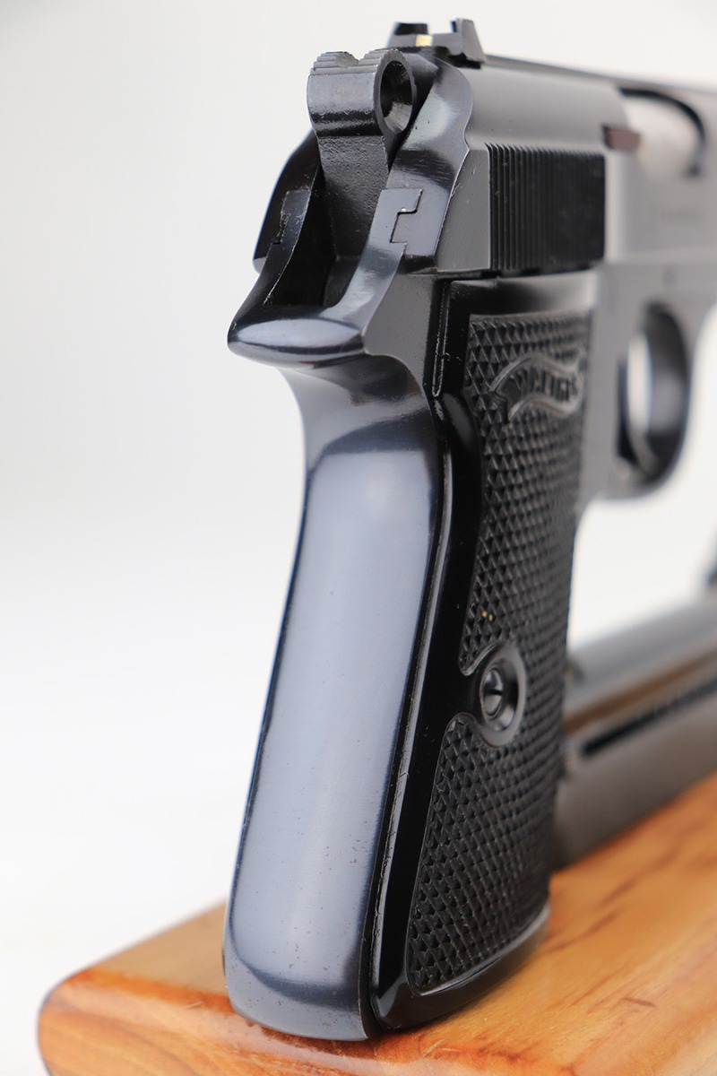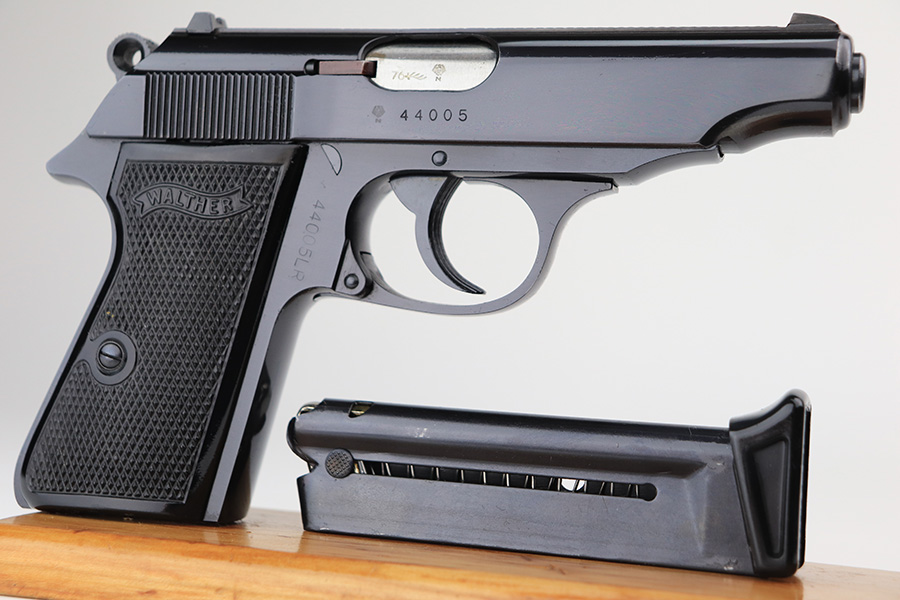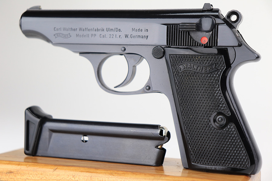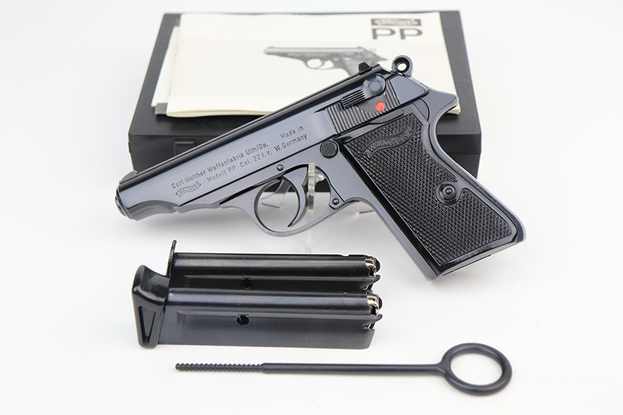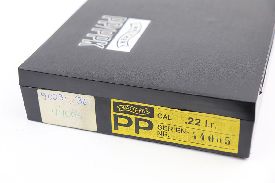 3/4/22 – This is a stone-mint example of a Walther PP manufactured in 1976. It is all matching, has the proper West German proofs, and is chambered in .22 LR. It comes with the original matching-numbered box, matching test target, owners manual, cleaning rod, a finger extension magazine, and a spare flat-bottom magazine. The gun is truly in like-new condition with no obvious signs of wear or use. Comes with excellent black plastic grips. The bore is stone-mint. Tiny import mark on edge of mag well.