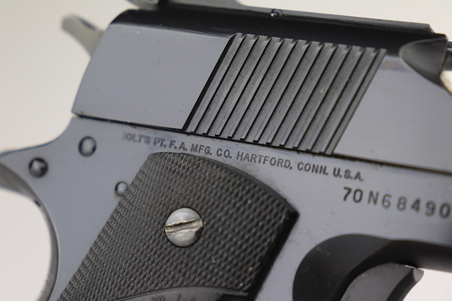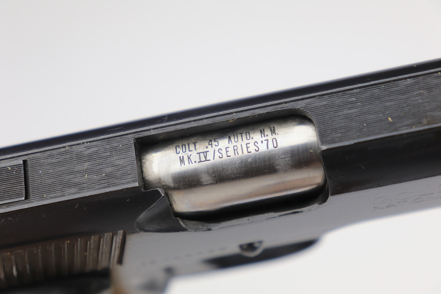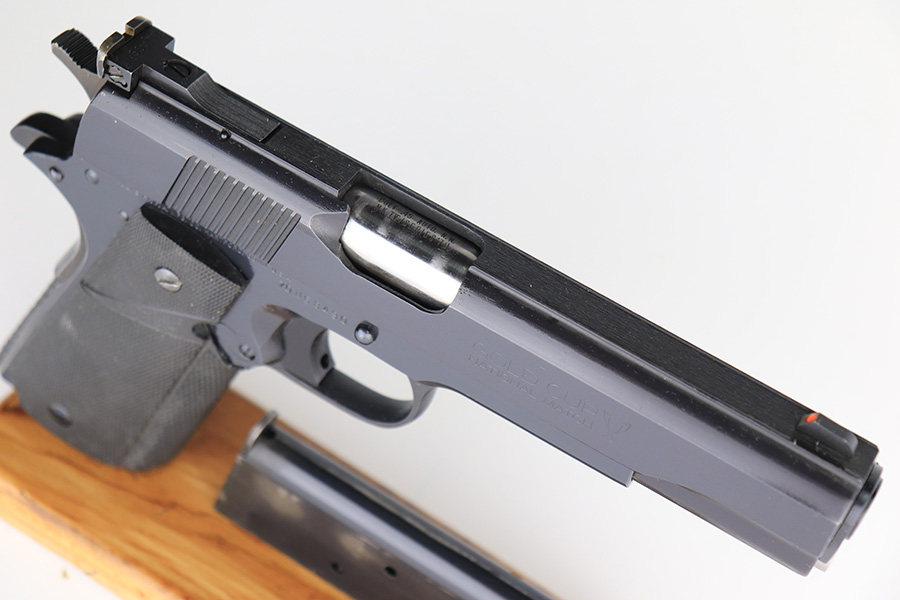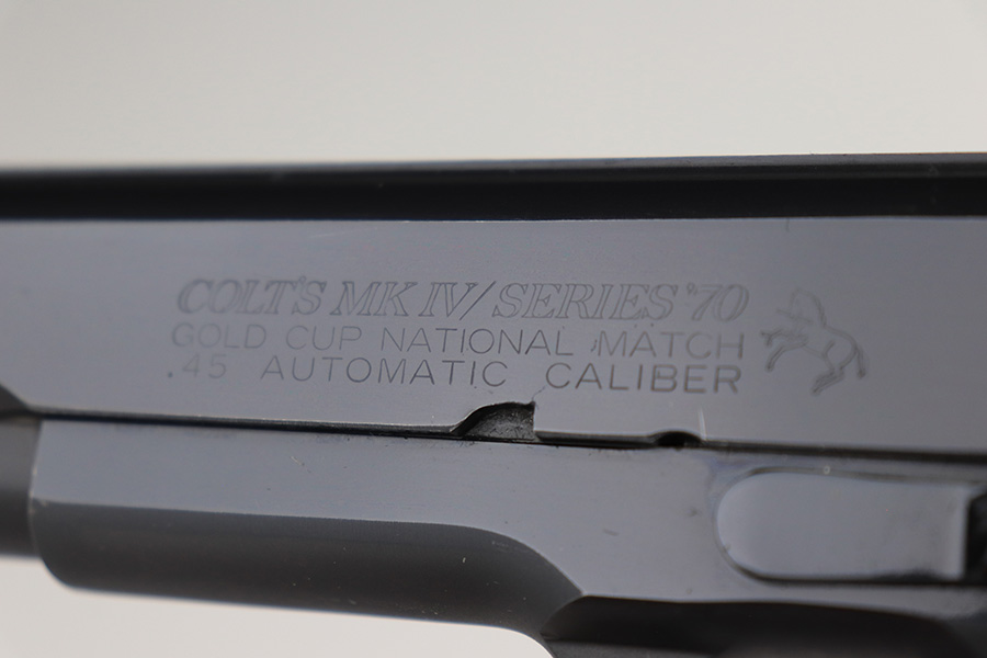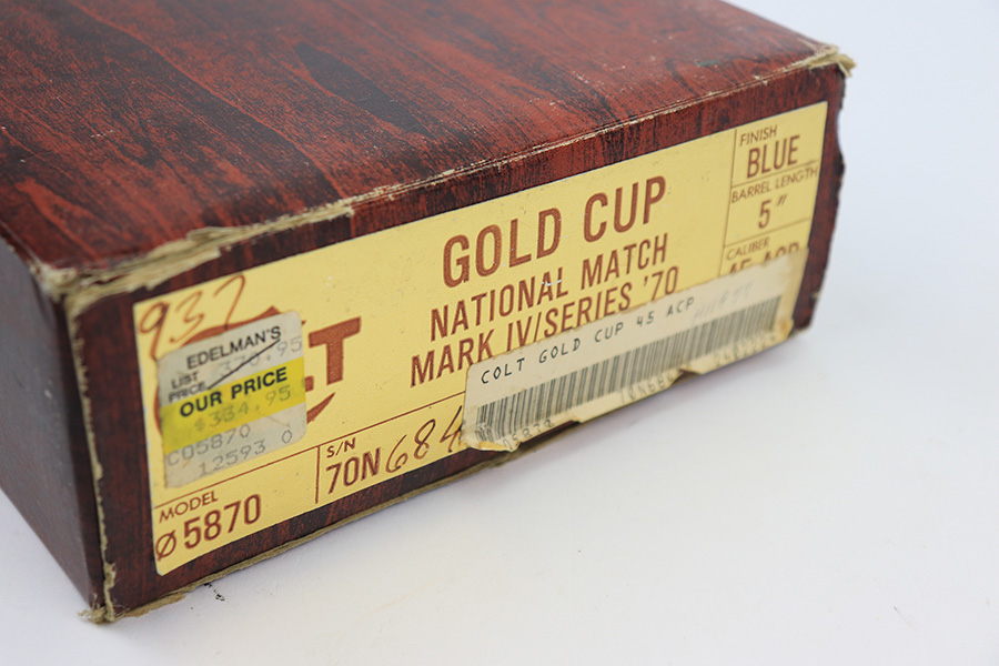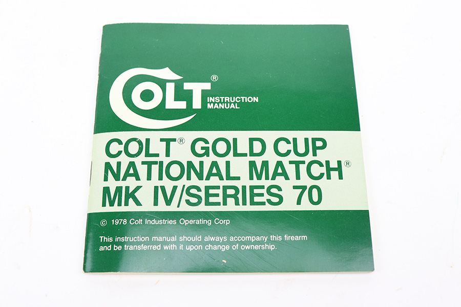 3/7/23 – This is a mint example of a Colt Mk IV Series 70 Gold Cup National Match manufactured in 1978 and chambered in .45 ACP. The gun is all matching and comes with its original matching-numbered box, owners manual, and one magazine. The gun is like-new with no obvious signs of wear or use. Comes fitted with an excellent Pachmayr black rubber grip. The bore is near-mint, just a hint of fouling in the grooves.