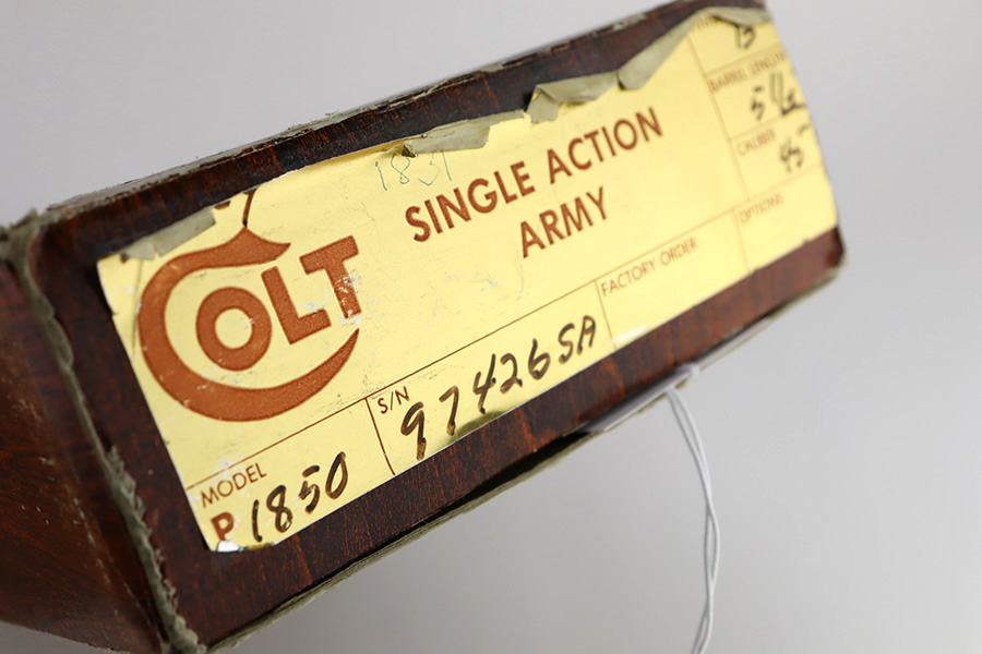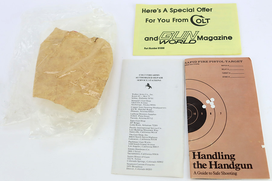 12/11/23 – This is a mint example of a 3rd Generation Colt Single Action Army Revolver, manufactured in 1978. Chambered in .45 Caliber with a 5.5″ barrel. It comes with its original matching-numbered box and owners manual. The gun is like-new with essentially no signs of wear or use. Fitted with excellent black plastic grips. Like-new bore.