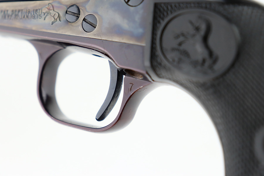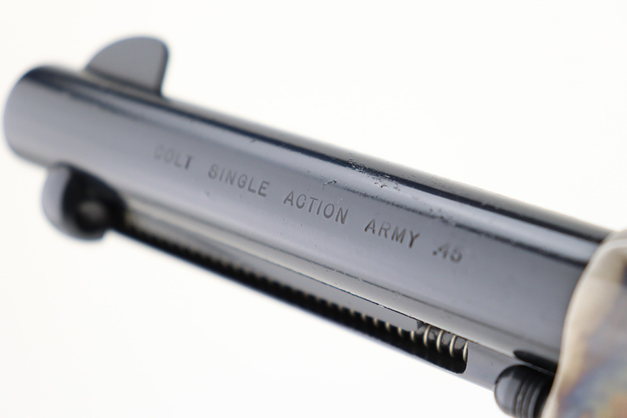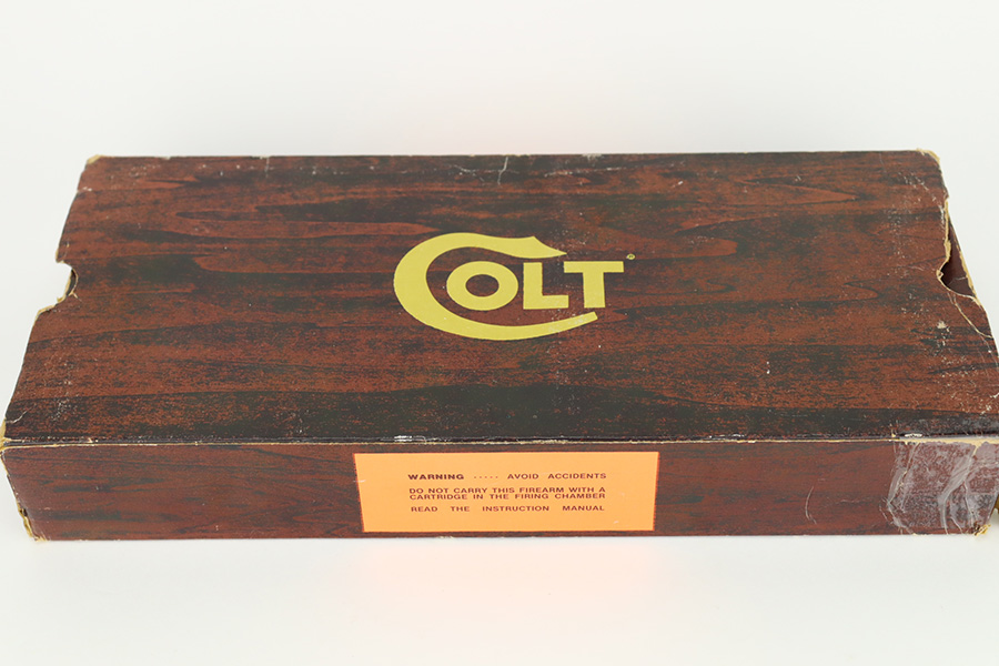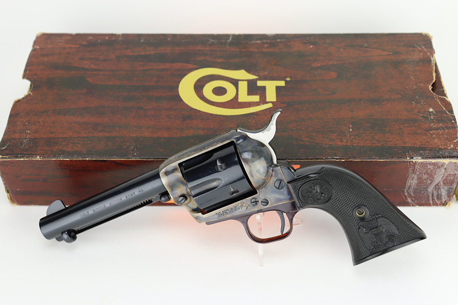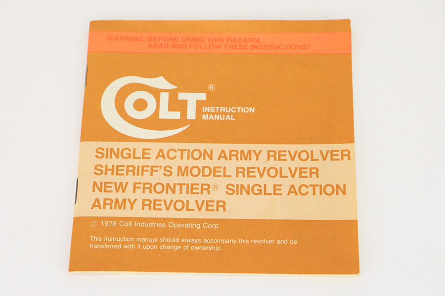 1/4/24 – This is a like-new example of a 3rd Generation Colt Single Action Army Revolver from 1977. Chambered in .45 with a 4.75″ barrel. It comes with a period-correct box (not numbered) and owners manual. The gun is in like-new condition with virtually no signs of wear – there is barely even a hint of a roll mark on the cylinder. Black plastic “American Eagle” grips. Factory-new bore.