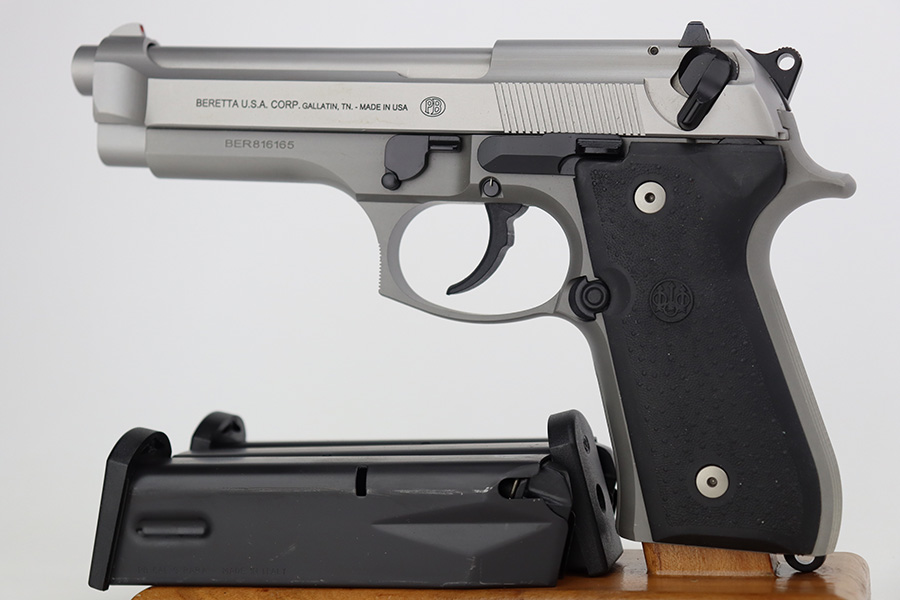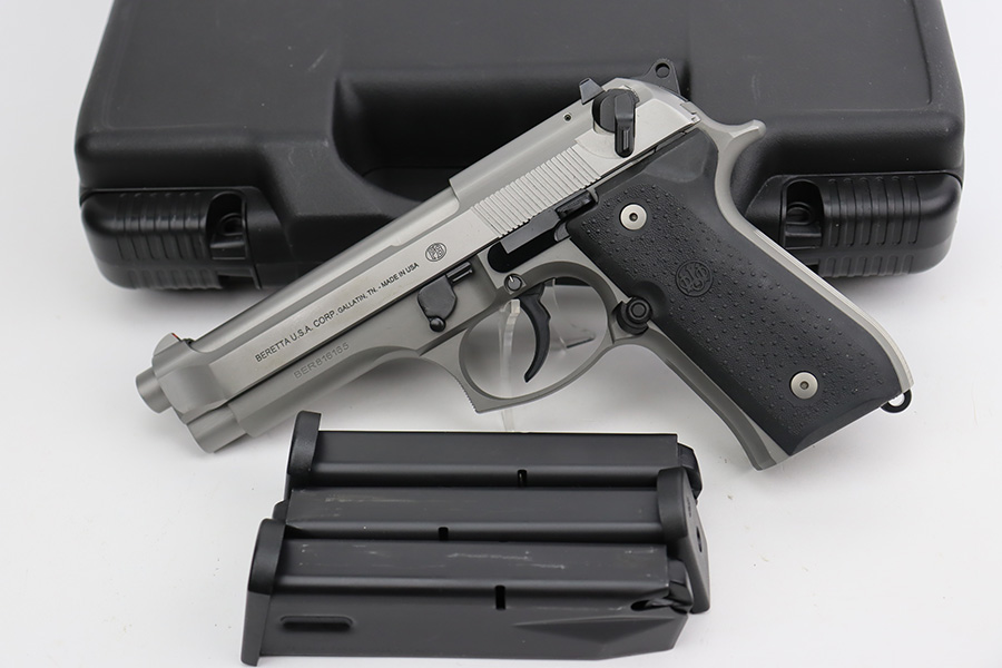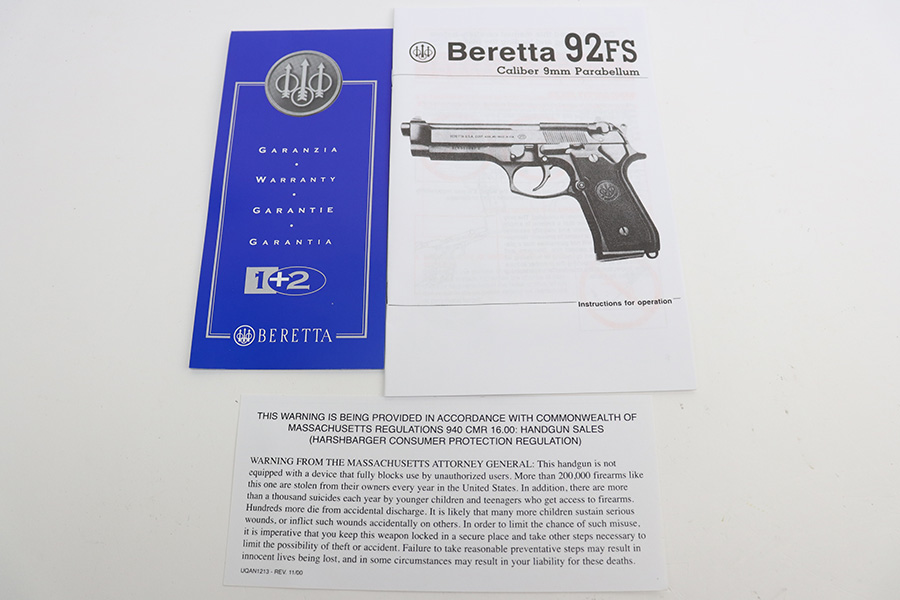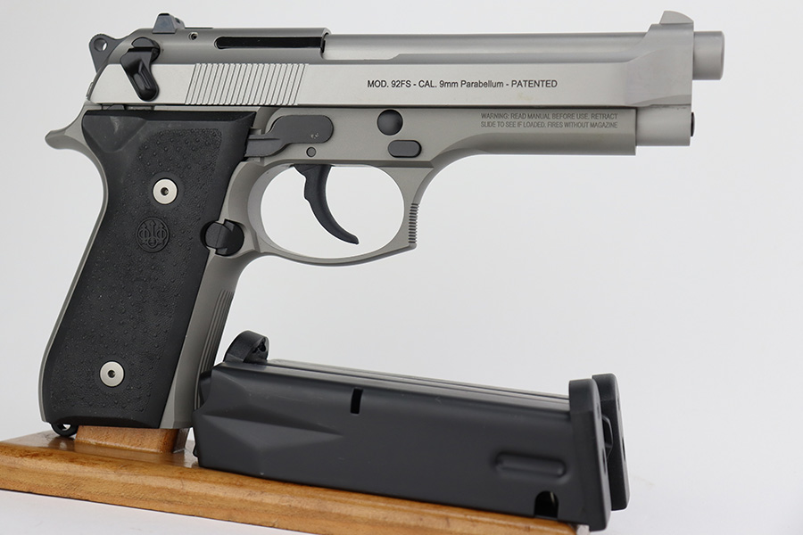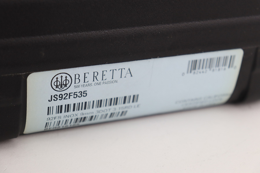 9/27/23 – This is a like-new example of a Beretta 92 FS INOX with a really nice satin stainless finish. It comes with its original matching box, owners, manual, sales papers, gun lock, and three magazines. The gun is mint with no signs of wear or use. Mint bore.