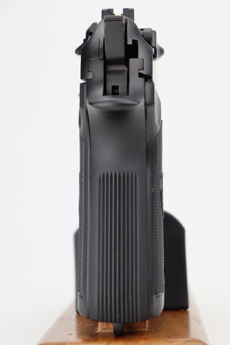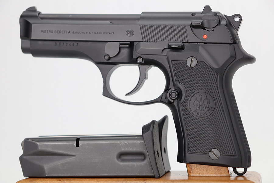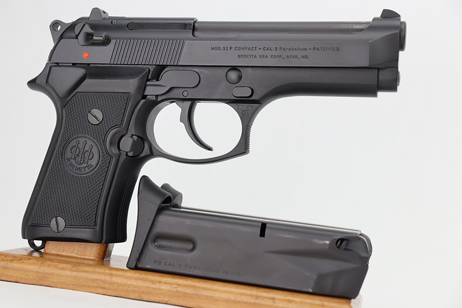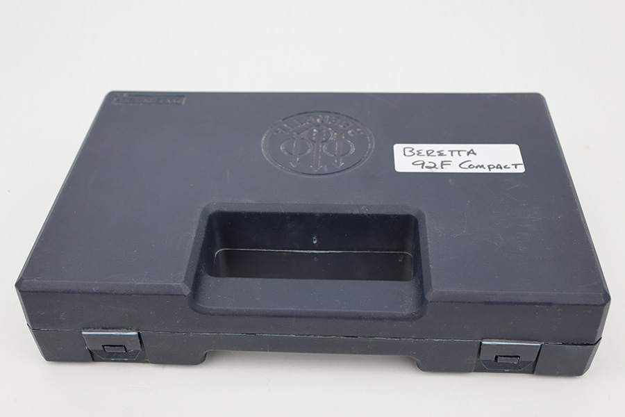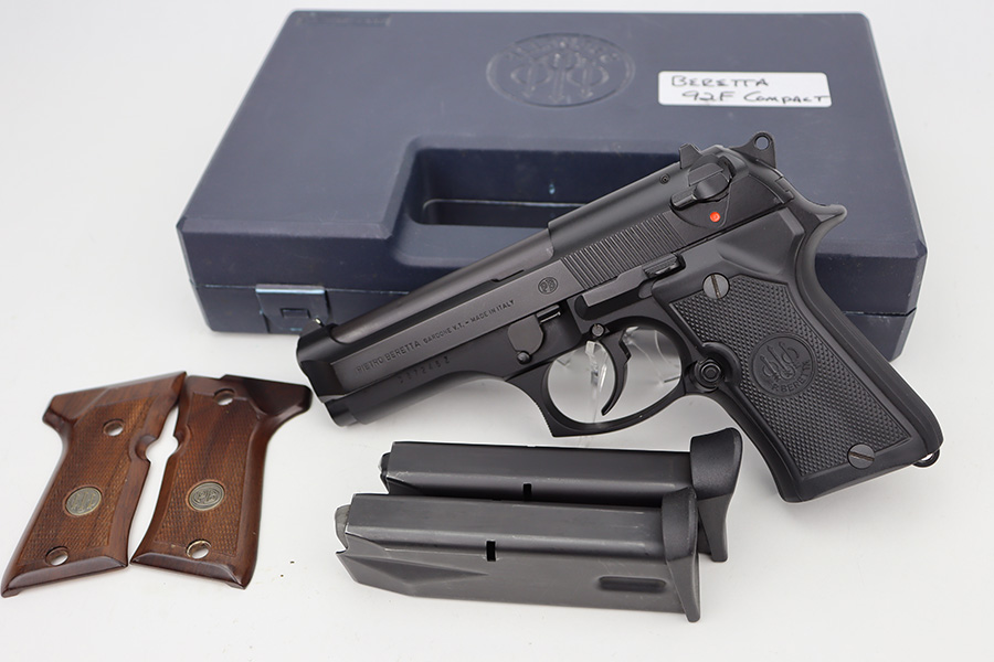 2/20/24 – This is a like-new Beretta Model 92F Compact, manufactured in 1989 and chambered in 9mm. It comes with a Beretta hard case (not numbered), two magazines, a set of spare wood grips. The gun is mint with no signs of wear or use. Fitted with nice black plastic grips. Mint bore.