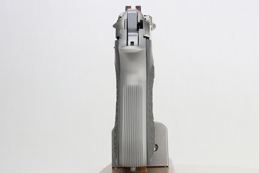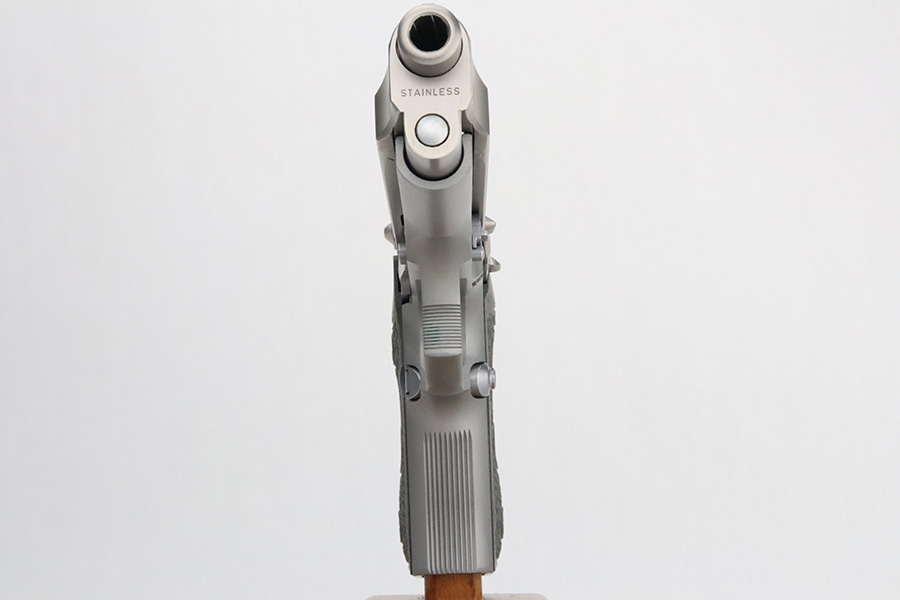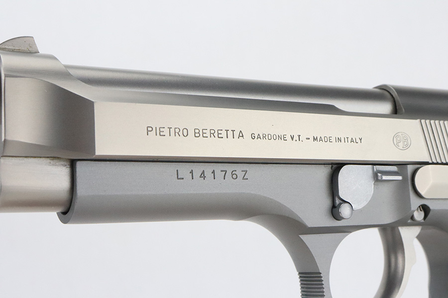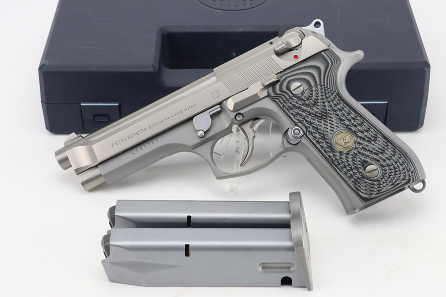 3/8/24 – This is a like-new Beretta Model 92FS INOX from 1991, chambered in 9mm. The gun has a really nice satin stainless finish and comes fitted with nice marbled composite Wilson Combat grips. It comes with its hard case (not numbered), two magazines, and cleaning brushes. The gun is mint with no signs of wear or use. Stone-mint bore.