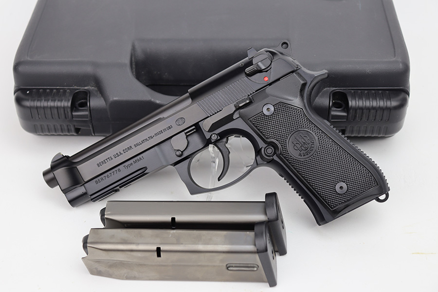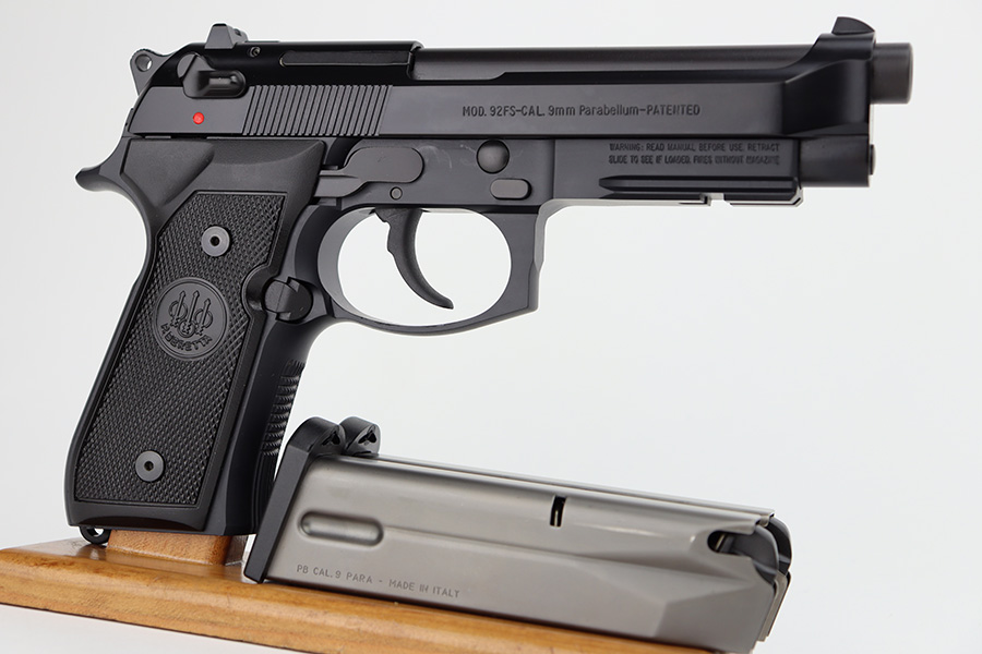 12/15/23 – This is a like-new Beretta Model 92FS, chambered in 9mm. It has a really nice matte black finish and is fitted with black plastic grips. No sign of wear or use. Mint bore. It comes with its original matching-numbered hard case, owners manual, two magazines, and gun lock.