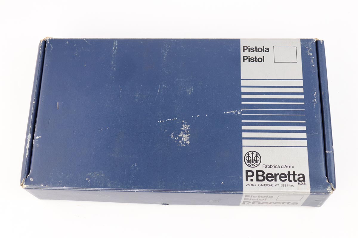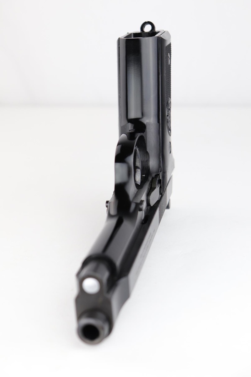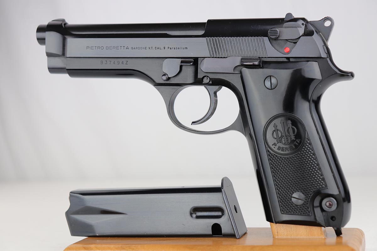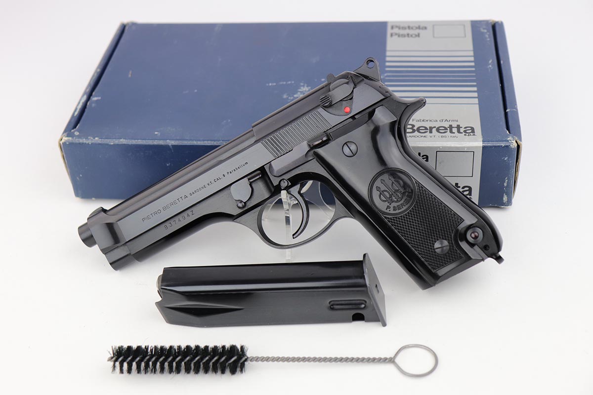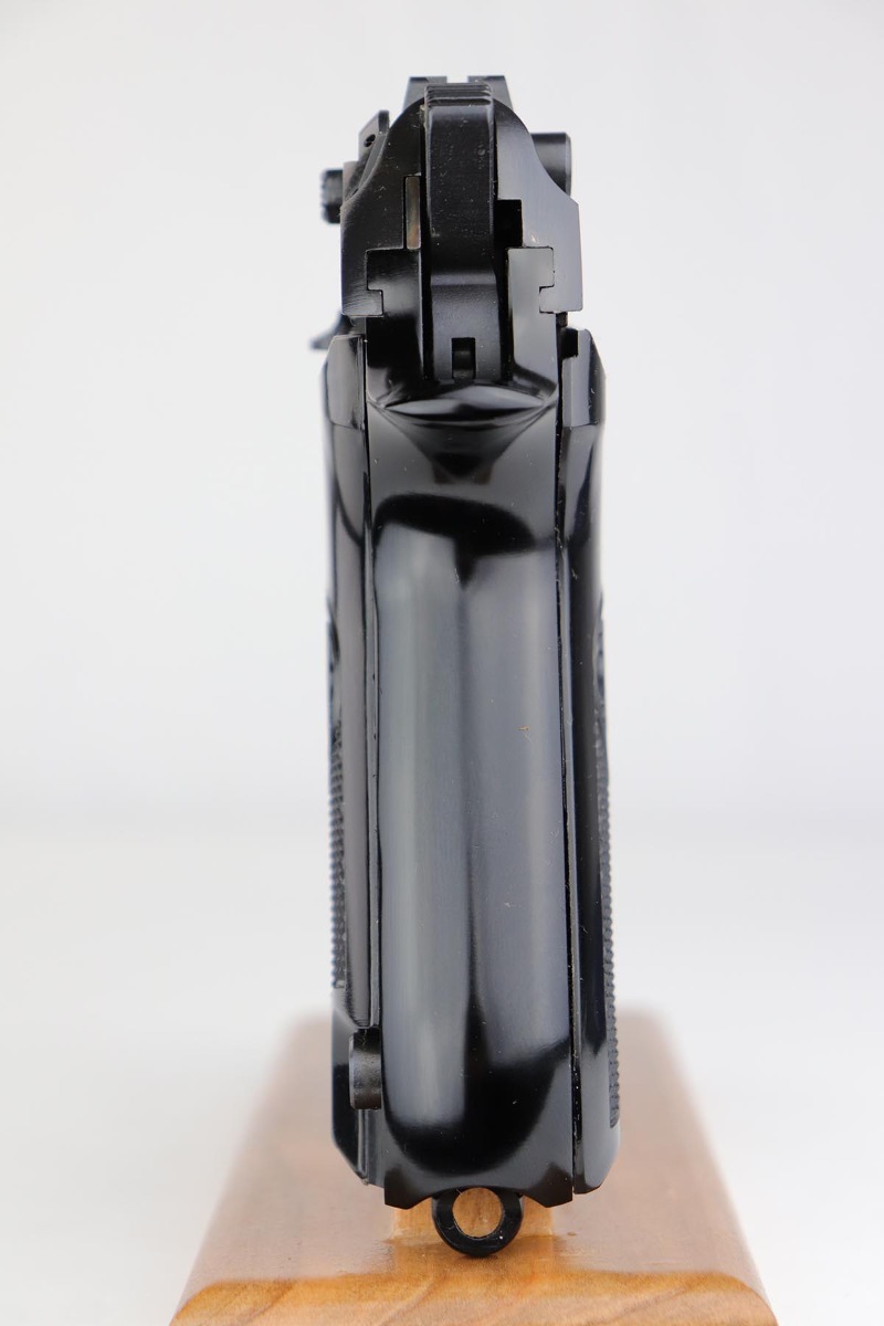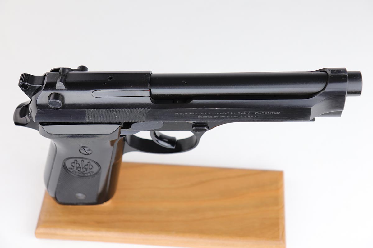 8/22/19 – The Beretta 92S was the first Beretta 92 series gun to have a slide mounted safety. It still retained the bottom magazine release from the original Model 92. This gun was made during US Army trials in the early 1980s, when the change to a slide mounted safety was requested by the US government. This gun is mint and appears unfired. It comes with its original serialized box and manual. It is beautifully finished in high gloss blue, unlike the later 92 series models that were matte.