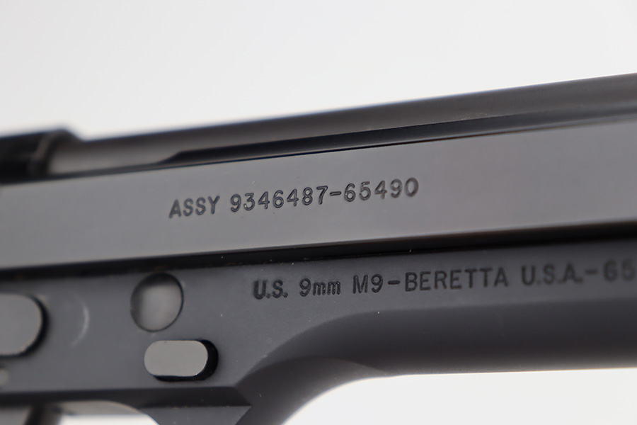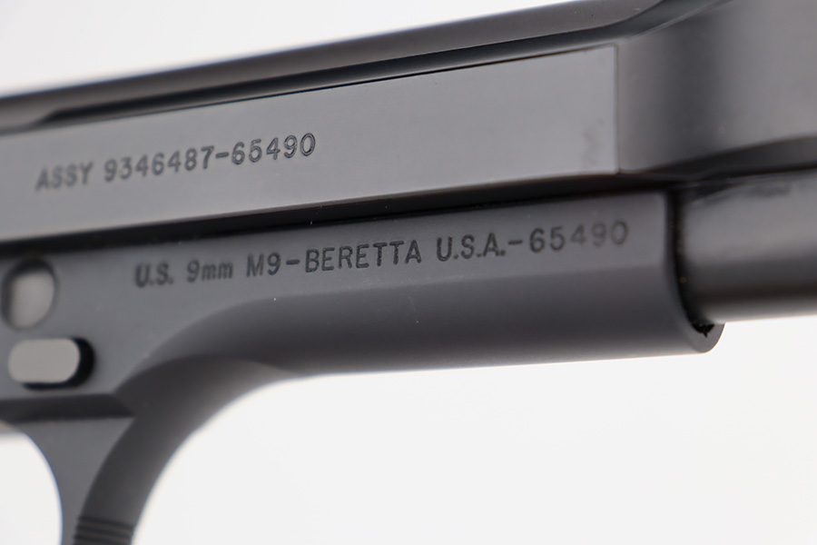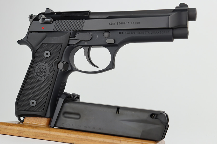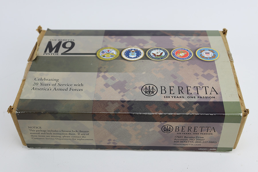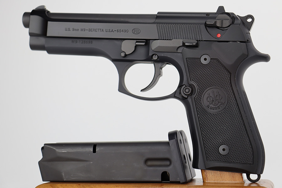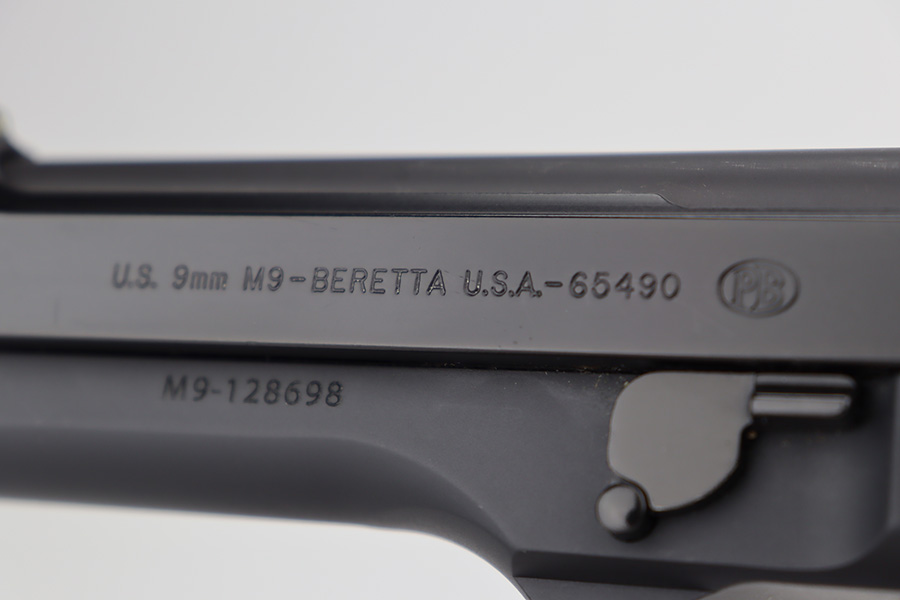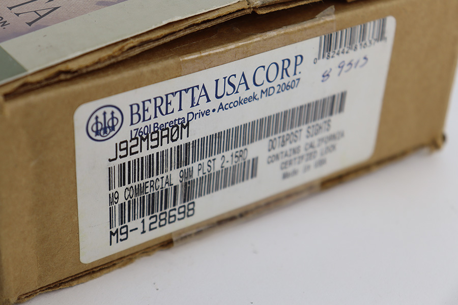 7/14/23 – This is a like-new example of a Beretta M9, chambered in 9mm Luger. It is all matching and comes with its original matching-numbered box, owners manual, gun lock, and two magazines. The gun shows almost no sign of wear or use, there is just one tiny handling mark on the front strap. Fitted with excellent black plastic grips. Mint bore.